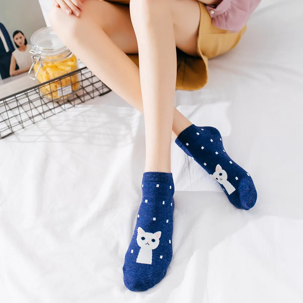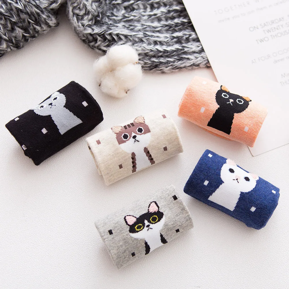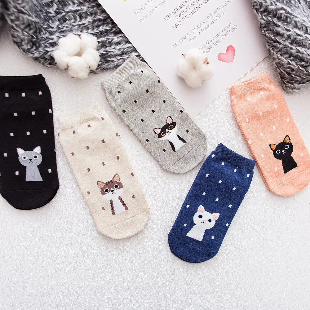1 пара, женские хлопковые носки, женские зимние носки в горошек с котом