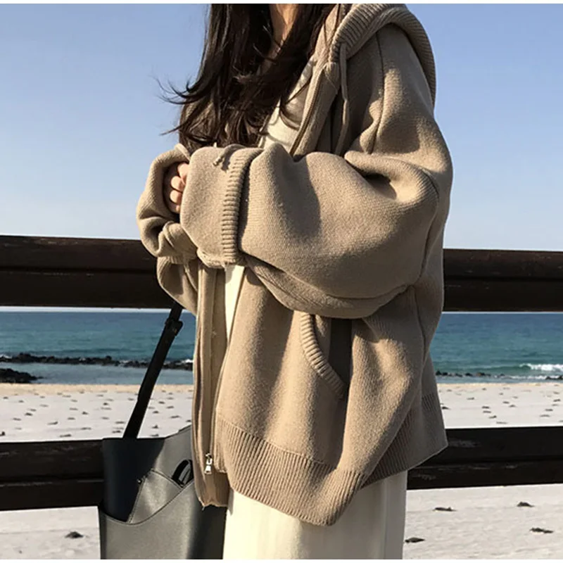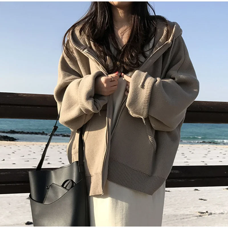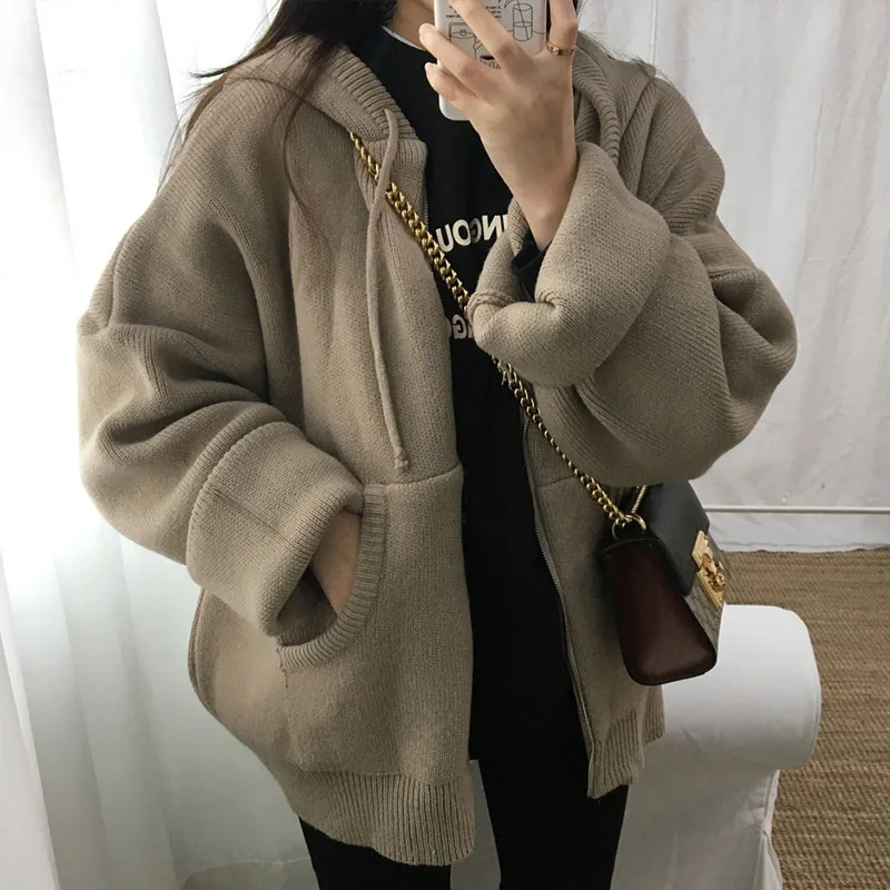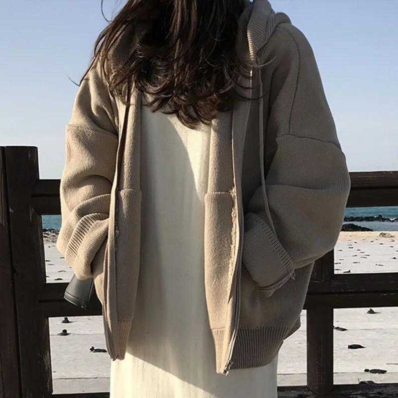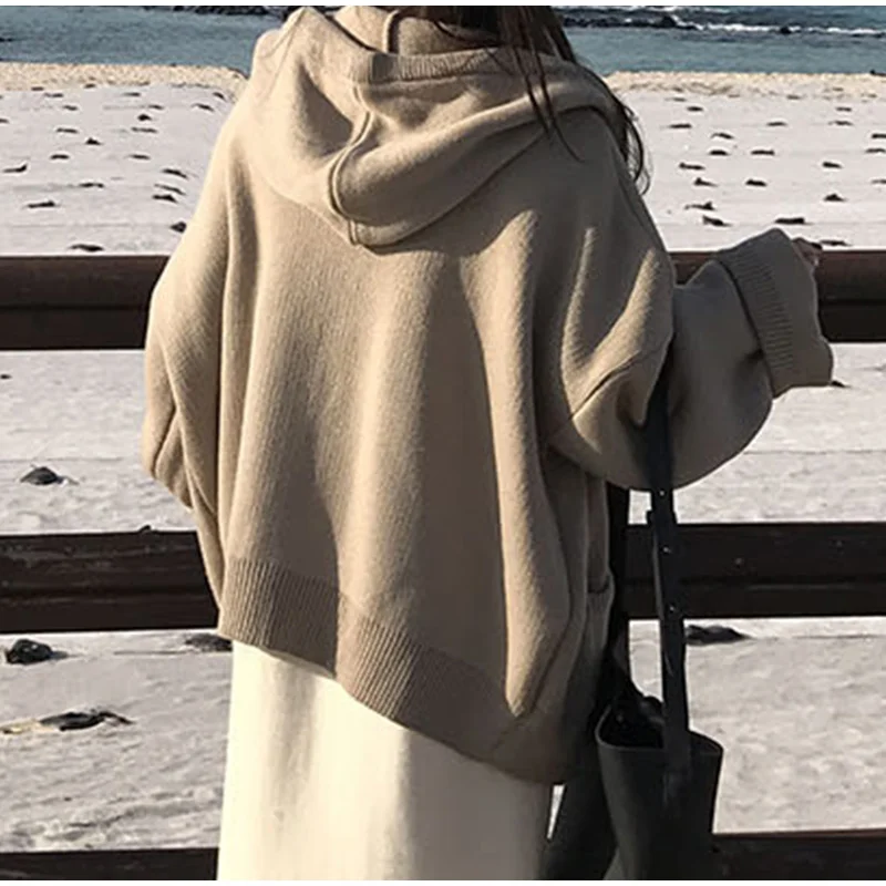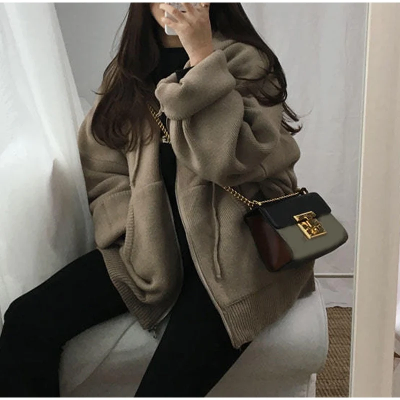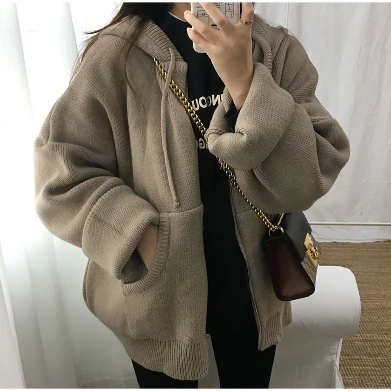 Осенний женский свитер с капюшоном на молнии Свободный кардиган плотная одежда женская куртка большого размера Pull Femme кардиганы Женское зимнее пальто