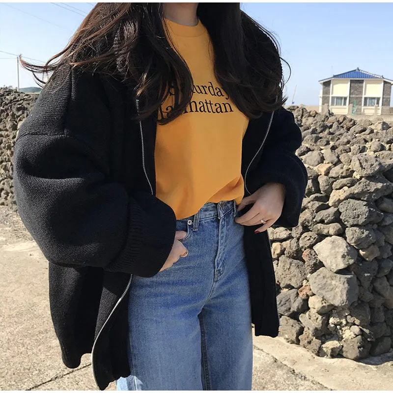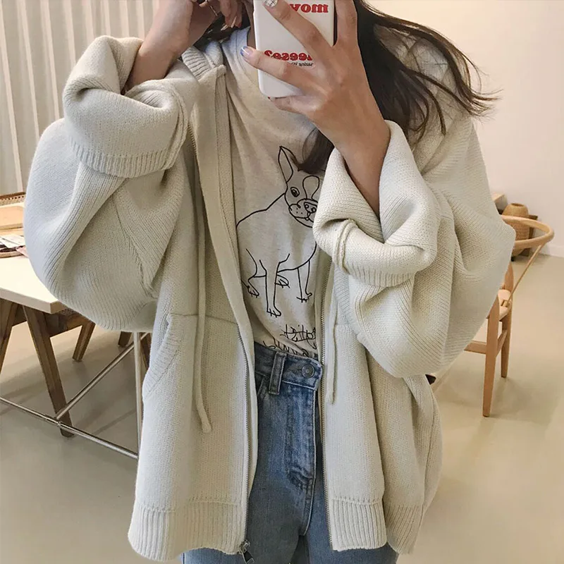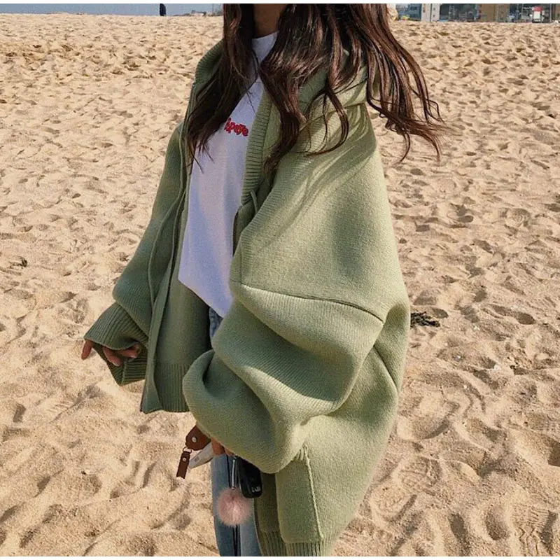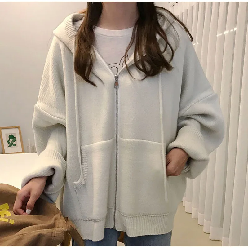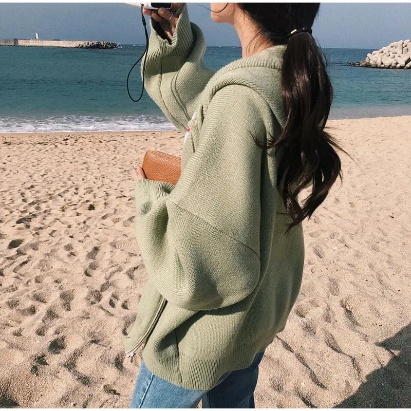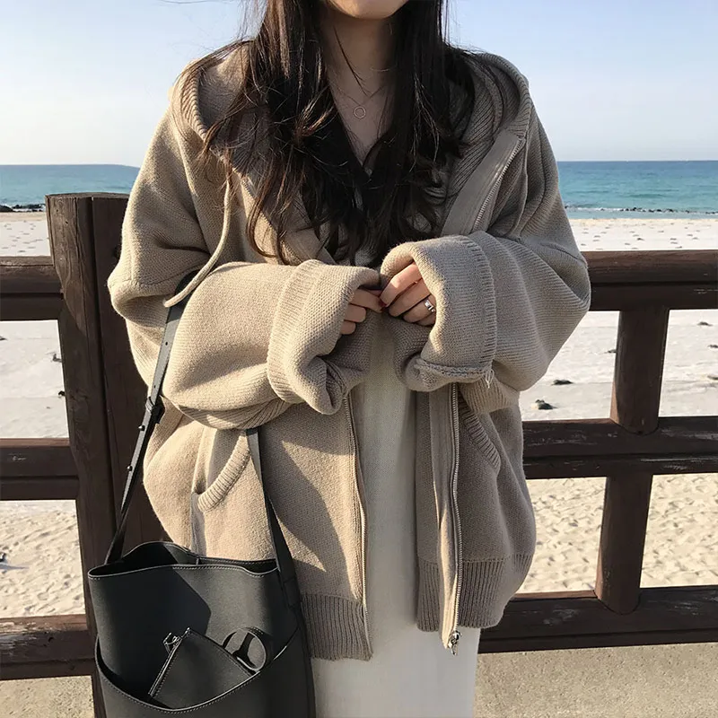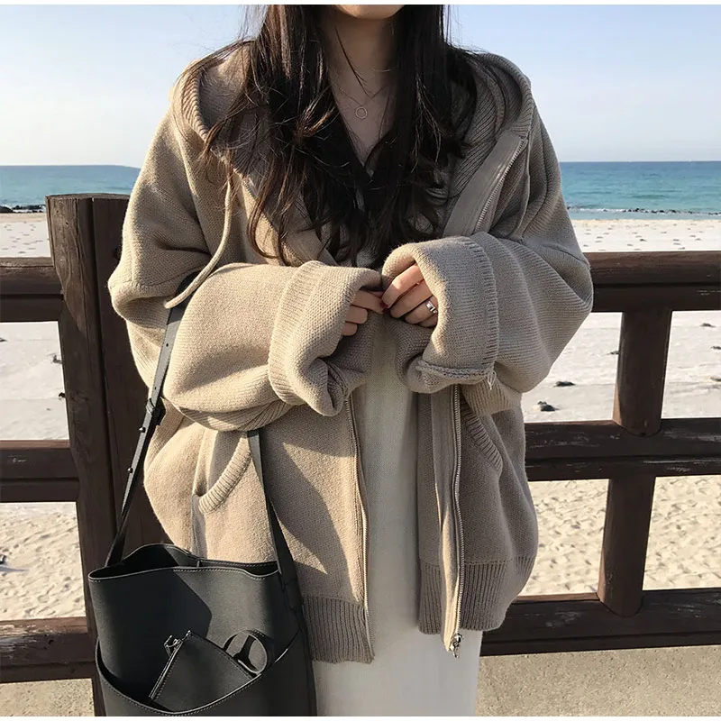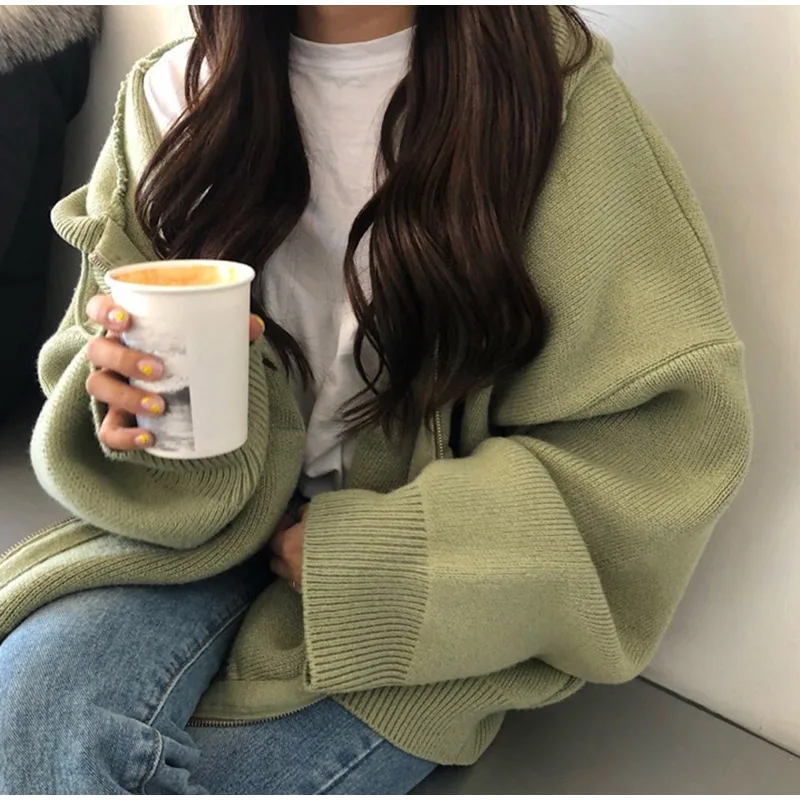 Осенний женский свитер с капюшоном на молнии Свободный кардиган плотная одежда женская куртка большого размера Pull Femme кардиганы Женское зимнее пальто