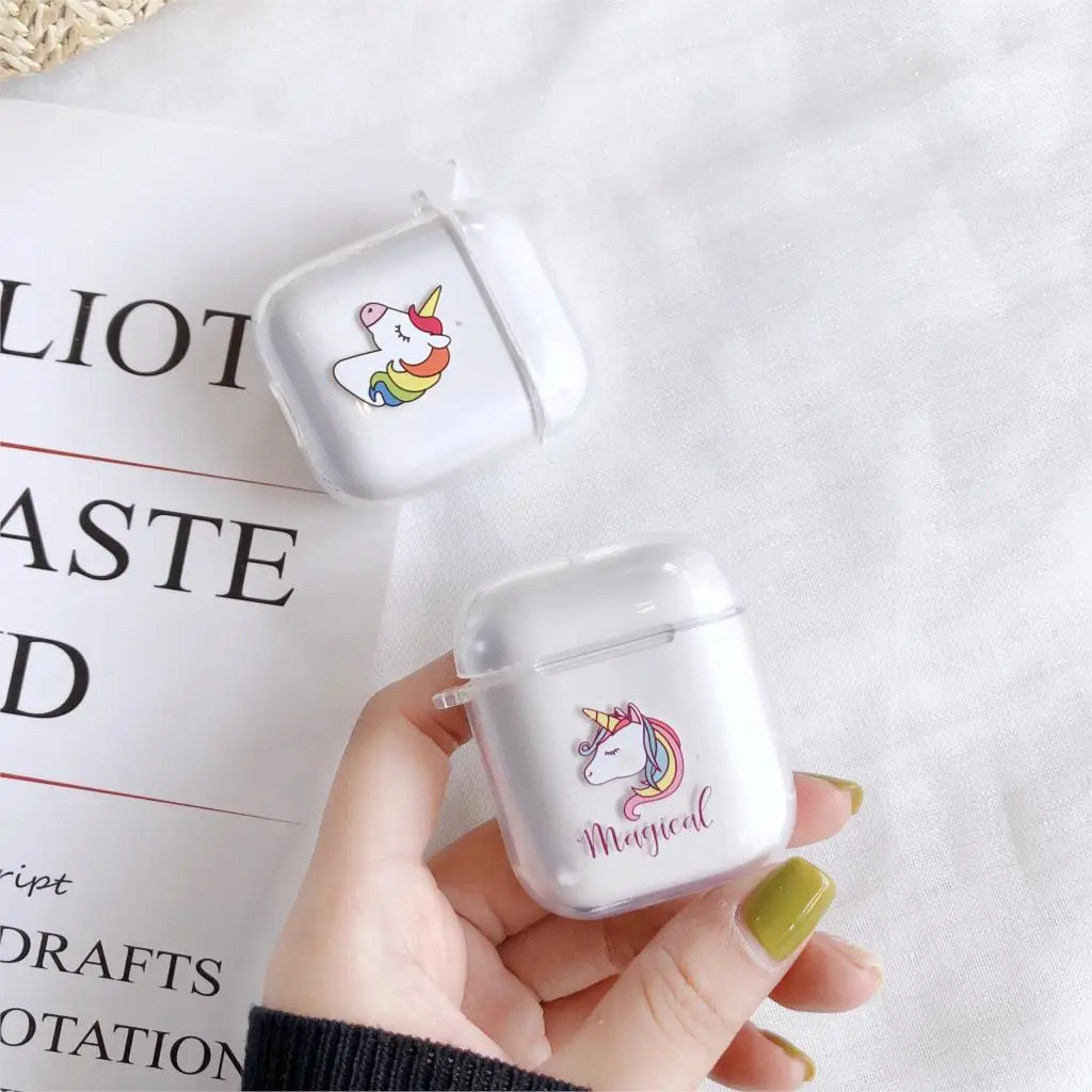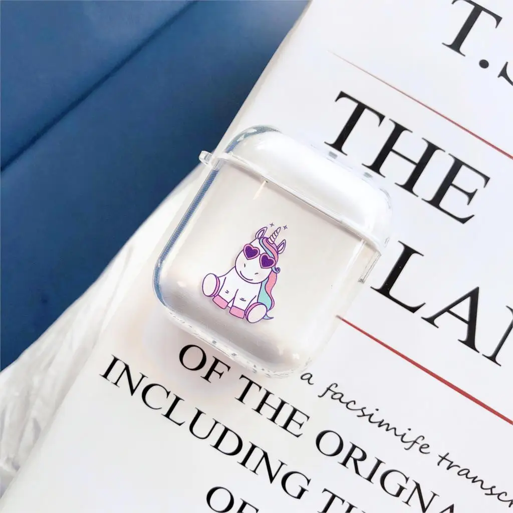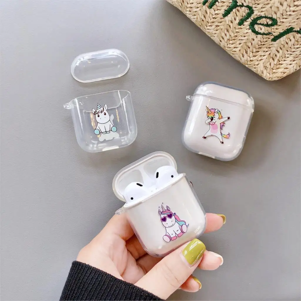 Милые прозрачные чехлы с рисунком единорога для Apple AirPods 2, чехол для зарядки Air Pods, прозрачный мягкий силиконовый защитный чехол AirPods2 Fundas