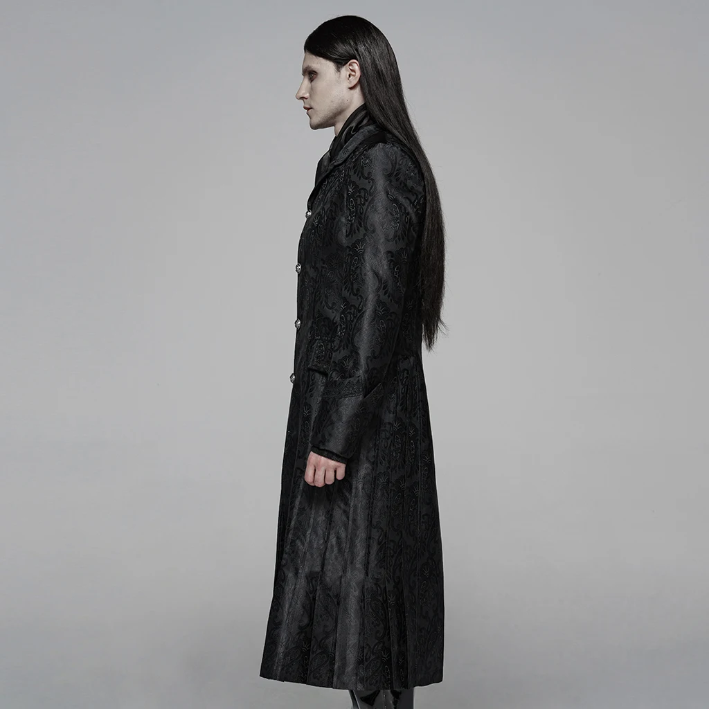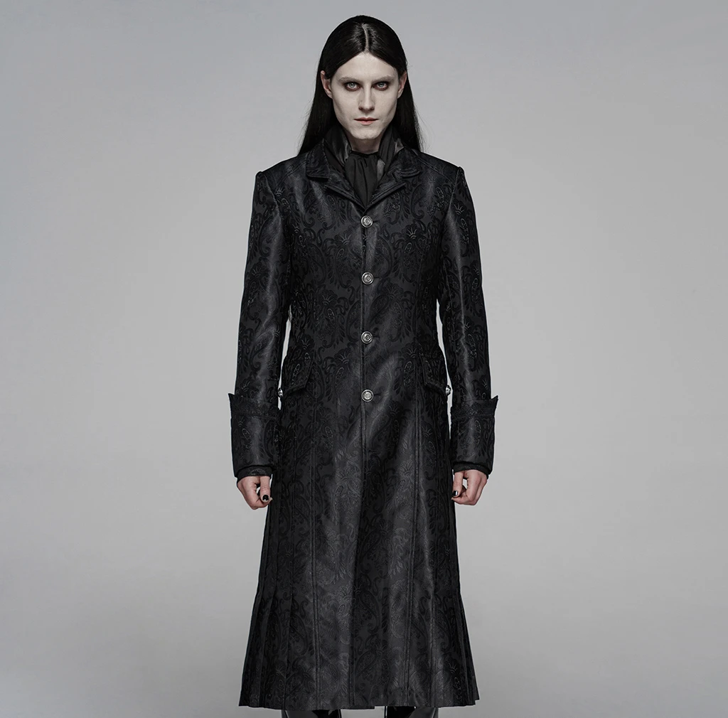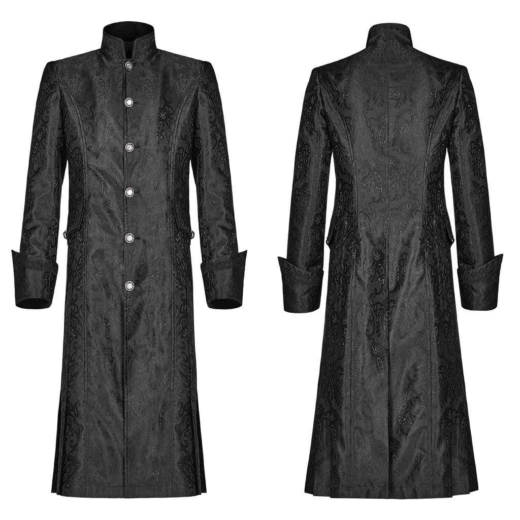 Вечерние костюмы в стиле панк Виктории, Крутое пальто для костюмированной вечеринки, готический стиль, Хэллоуин, цветочный рисунок, жаккард, облегающая Мужская черная длинная куртка, Панк Рейв, Y-1076