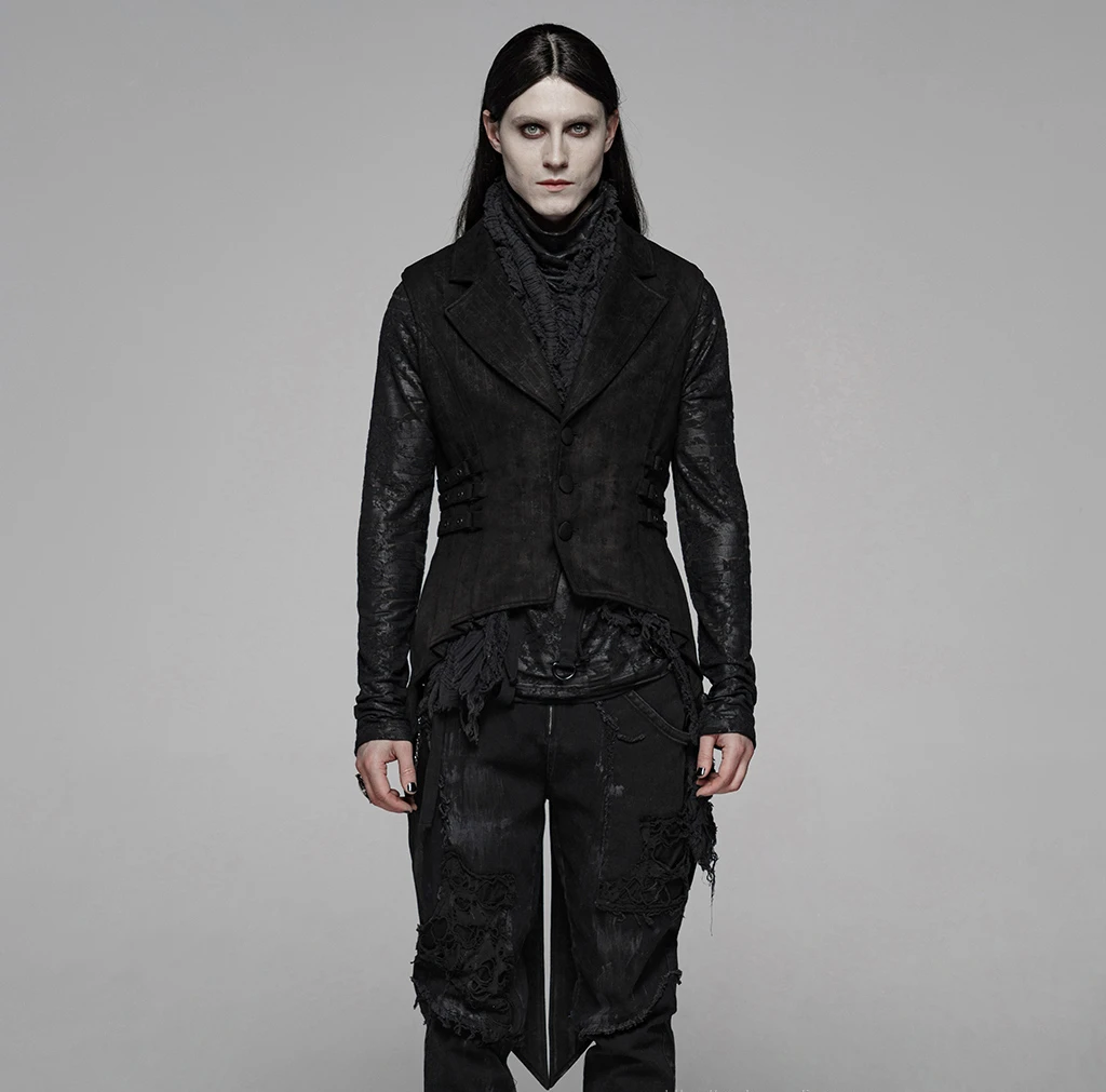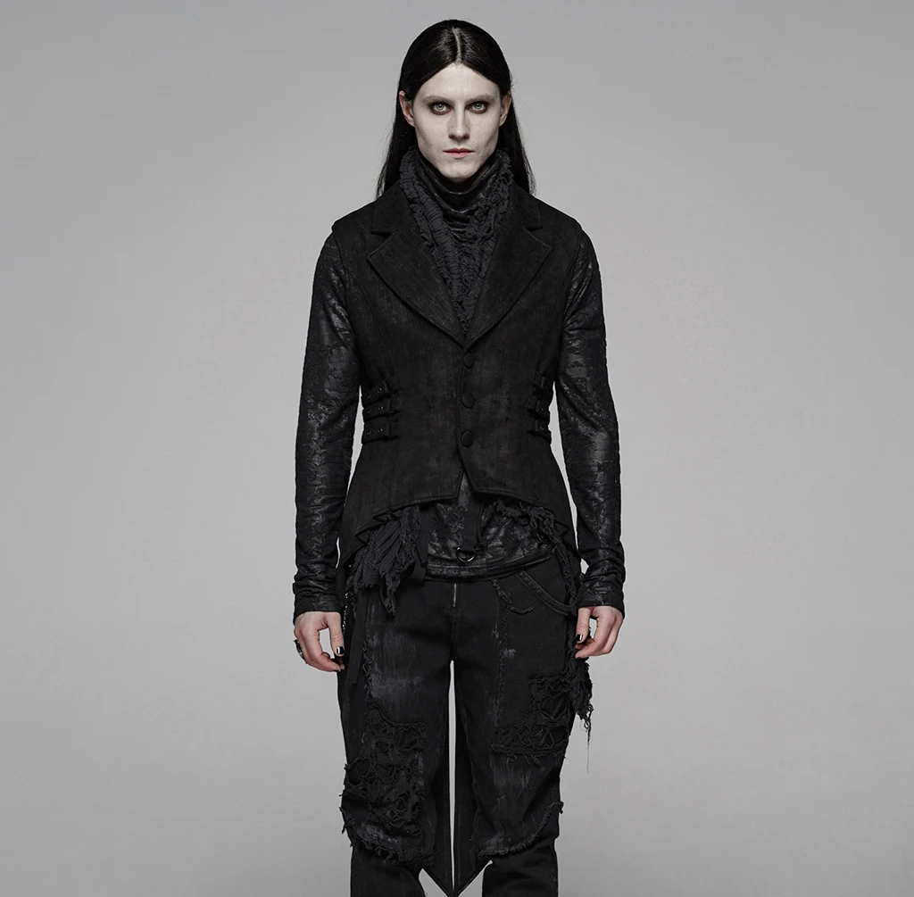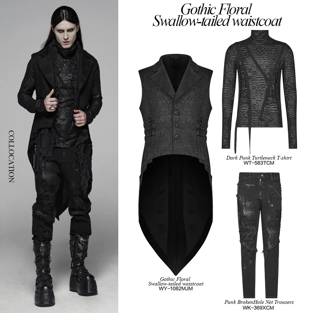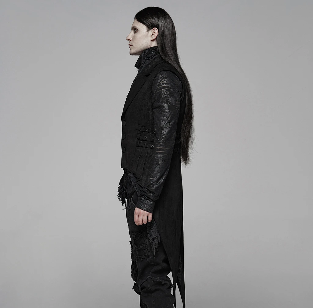 Готические вечерние, Клубные, повседневные, без рукавов, мужские пальто, жилет, модные, элегантные, цветочные, замшевые, с хвостом, Длинные куртки, в стиле панк, Y-1082