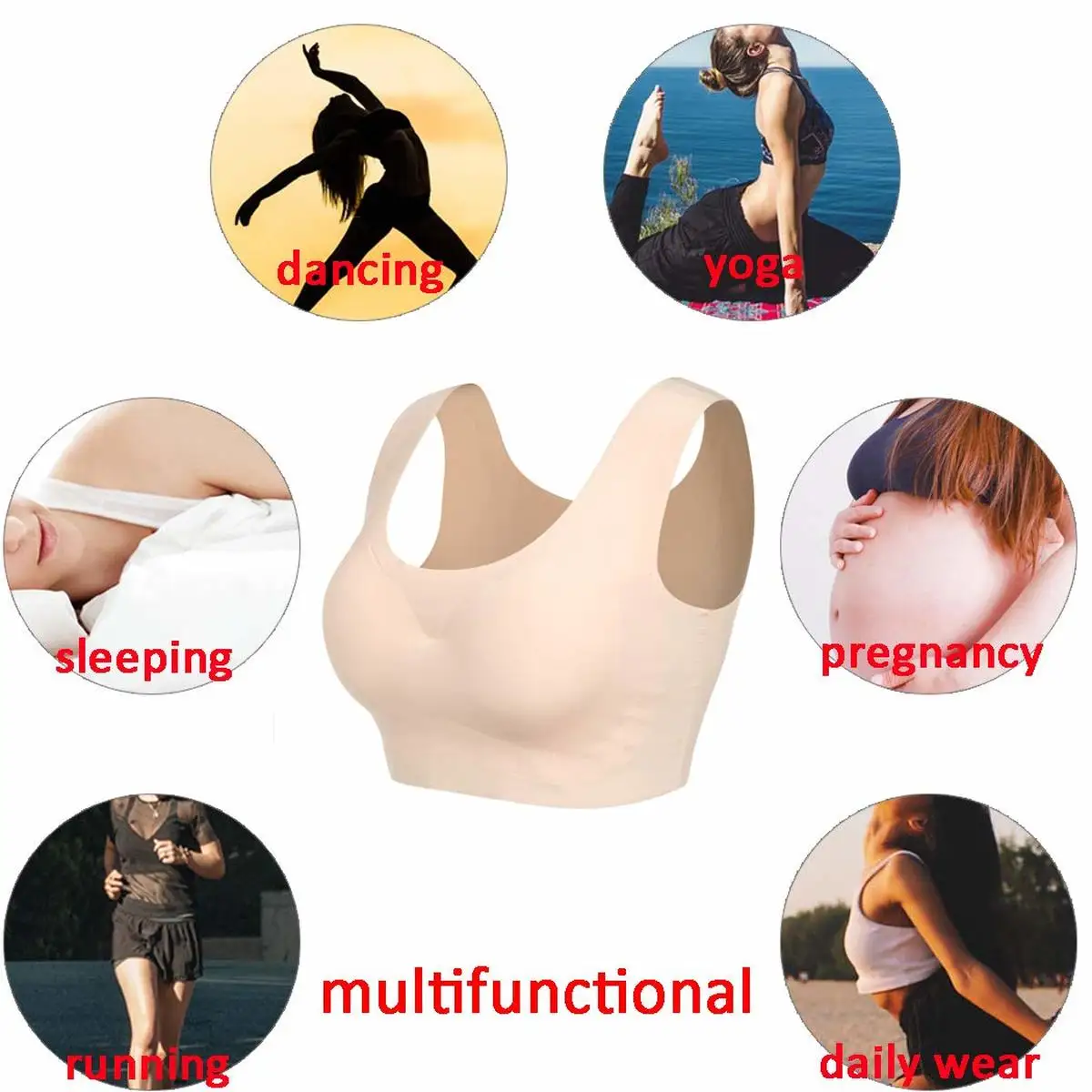 2. Бесшовный дизайн-наш Мягкий Бесшовный Бюстгальтер для сна, бюстгальтер для йоги с использованием уникальной технологии адгезии, без швов и полностью плоский. Это выглядит потрясающе под рубашкой, потому что она полностью гладкая, без линий, без выпуклостей. Даже спортивные бюстгальтеры не так удобны, поскольку имеют швы.