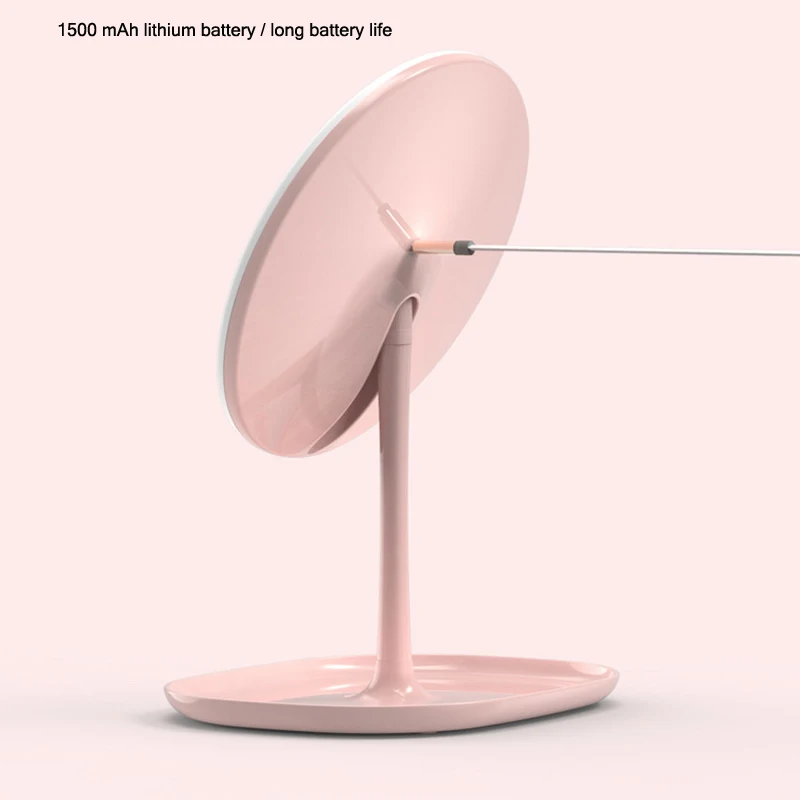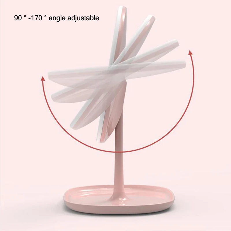 Зеркало высокой четкости 18 см, изображение четкое и легко увидеть Принять опал фитиль, высокая яркость, низкий светильник, спад, без бликов, без энергопотребления Трехцветная переменная частота затемнения, белый светильник, теплый светильник, смешанный светильник можно отрегулировать в соответствии с индивидуальными потребностями Встроенный литиевый аккумулятор емкостью 1500 мА · ч, usb-кабель для зарядки данных, прост в использовании, может использоваться в любое время и в любом месте Регулировка угла 90-170 °, отсутствие мертвых концов, делает макияж более удобным 20*14 см шасси для хранения ежедневных небольших косметических предметов Спецификация: Материал: АБС-пластик Цвет: белый светильник, теплый светильник, смешанный светильник Мощность: Встроенный литиевый аккумулятор 1500 мАч Интерфейс зарядки: Micro USB Размер зеркала: 18 см в диаметре Мощность: 5 Вт Заполняющий светильник интенсивность: 80 люменов Место для хранения: 20*14 см