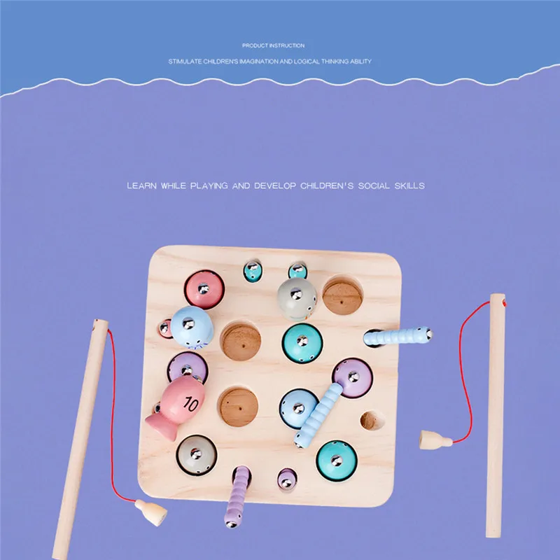 Деревянная Магнитная рыболовная игрушка в виде рыбки, обучающая рыболовная игрушка