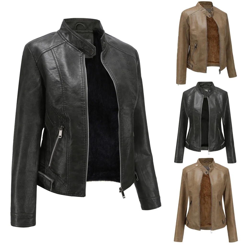 Зимнее теплое женское короткое пальто, кожаная куртка, парка на молнии, верхняя одежда
