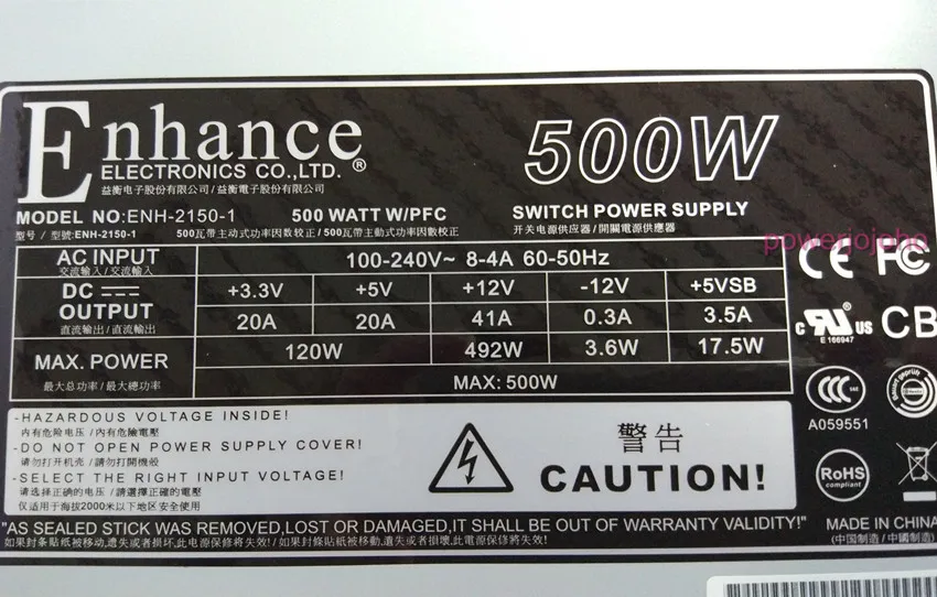 Номинальная мощность 500 Вт, через 3C, CE, FCC, CB, UL, NEMKO, ROHS и другие международные сертификаты, с активной коррекцией коэффициента мощности