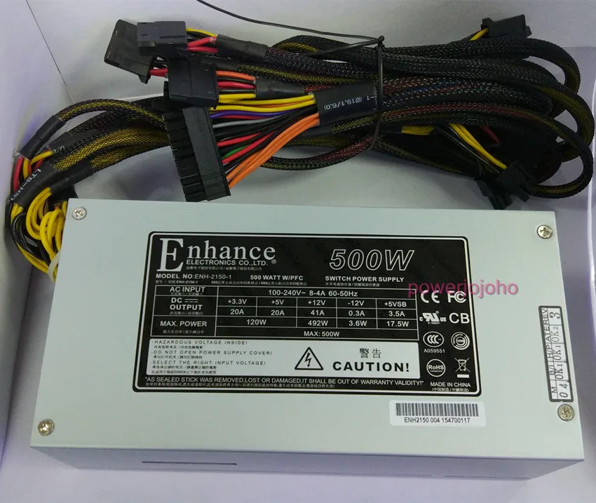 Модель: ENH2150Тип устройства: блок питанияМощность: 500 ВтВход: 100-240 ВСоединения: 20 + 4PIN * 18pin + 2*4pin (CPU)SATA * 3IDE * 8 Размер: L200 * W100 * h70 мм (держатель 50 мм)Вентилятор: 60 ммPFC:Активный PFC (PFC>99%)Низкий уровень шума, низкая пульсация, высокая эффективностьВес брутто: 2,1 кгСм. также другие товары: 8884000121823539, 8884000121823540, 8884000121823542, 8884000121823543