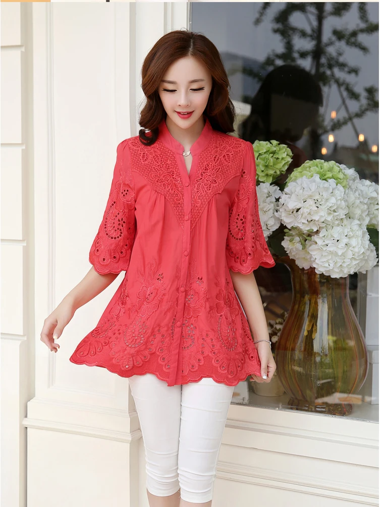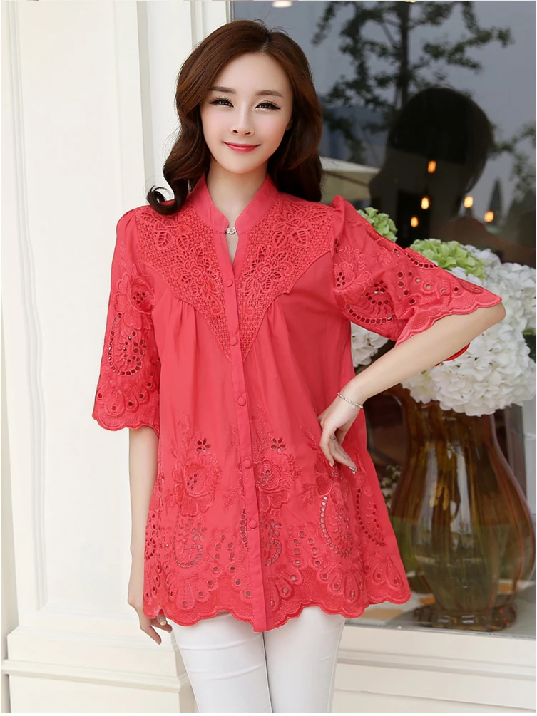 Свободная рубашка большого размера с вышивкой на весну-лето 2019, однотонные льняные топы с полыми рукавами-крючками и v-образным вырезом AH131
