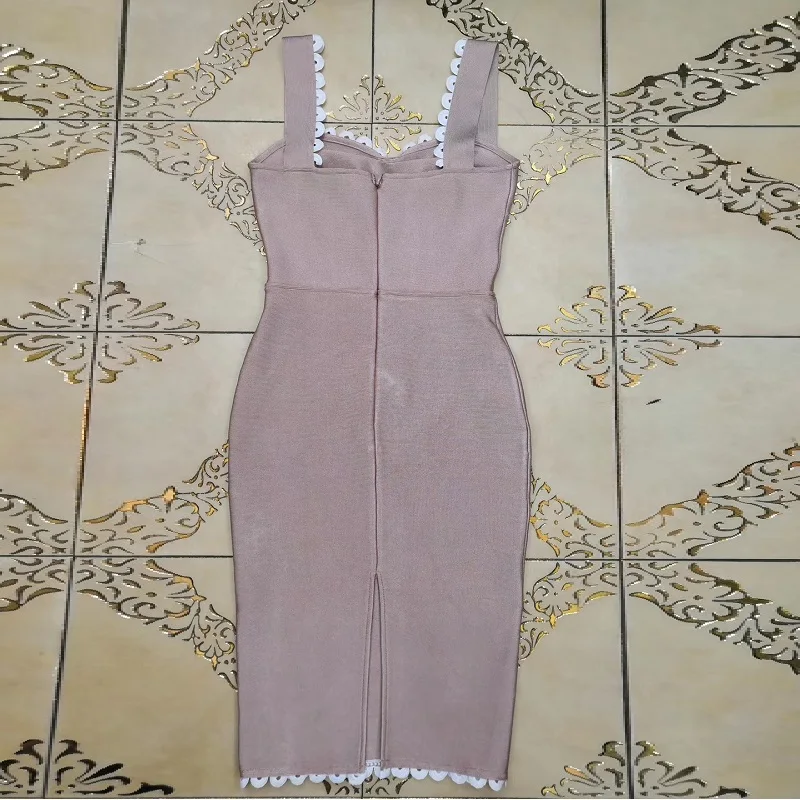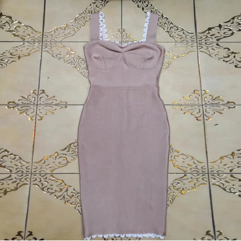 Новые поступления бежевые сексуальные спагетти ремень Bodycon Миди бандажные Вечерние платья женские элегантные кружевные без рукавов Коктейльные Vestidos 2019