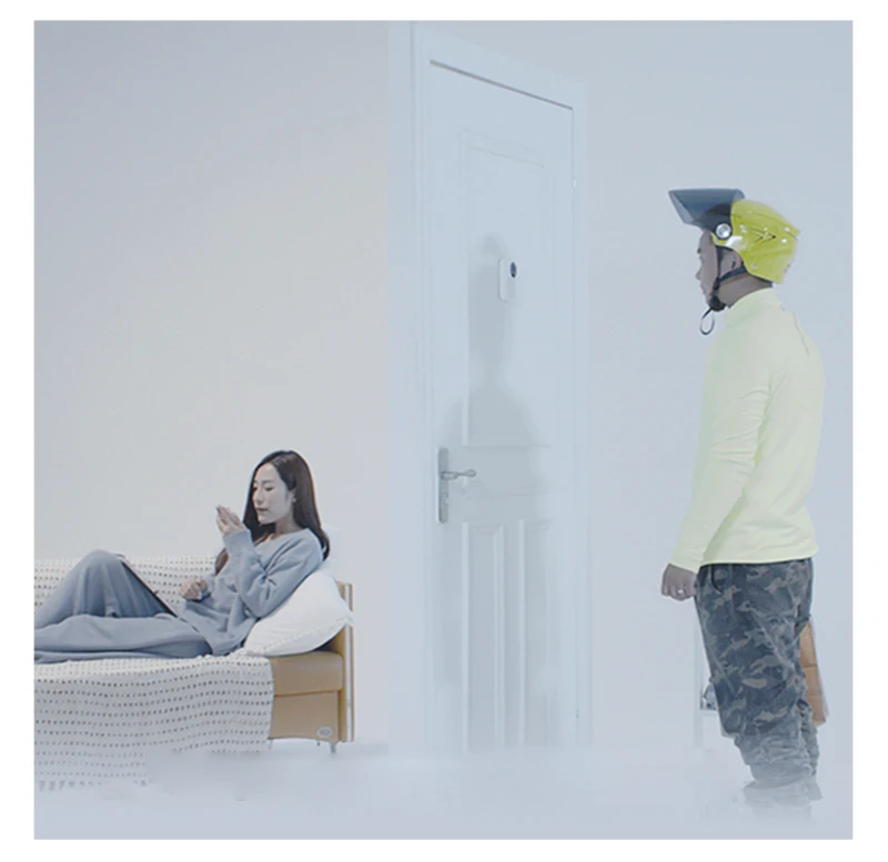 Оснащен датчиком человеческого тела PIR, функция обнаружения съемки с нулевым динамическим распознаванием, когда кто-то остается в пределах 2,5 метров за дверью, немедленно Начните съемку короткого видео и отправьте уведомление в приложение Mijia.