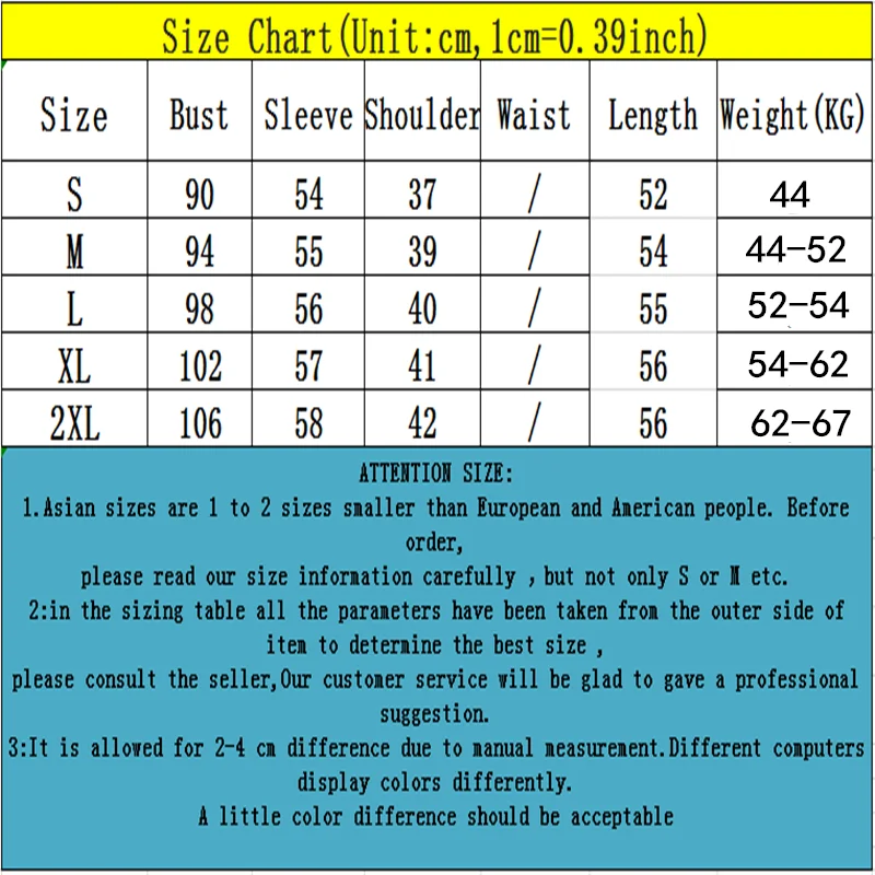 Внимание Размер: 1. Азиатские размеры на 1-2 размера меньше, чем европейские и американские. Перед заказом, Пожалуйста, внимательно прочитайте нашу информацию о размерах, но не только S или M и т. д. 2: в таблице размеров все параметры были взяты с внешней стороны изделия, чтобы определить лучший размер, Пожалуйста, обратитесь к продавцу, Наша служба поддержки клиентов будет рада предоставить профессиональное предложение. 3: допускается разница в 2-4 см из-за ручного измерения. Разные компьютеры отображают цвета по-разному. Возможна небольшая разница в цвете |