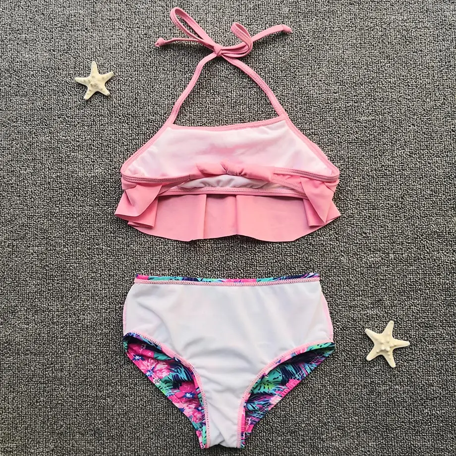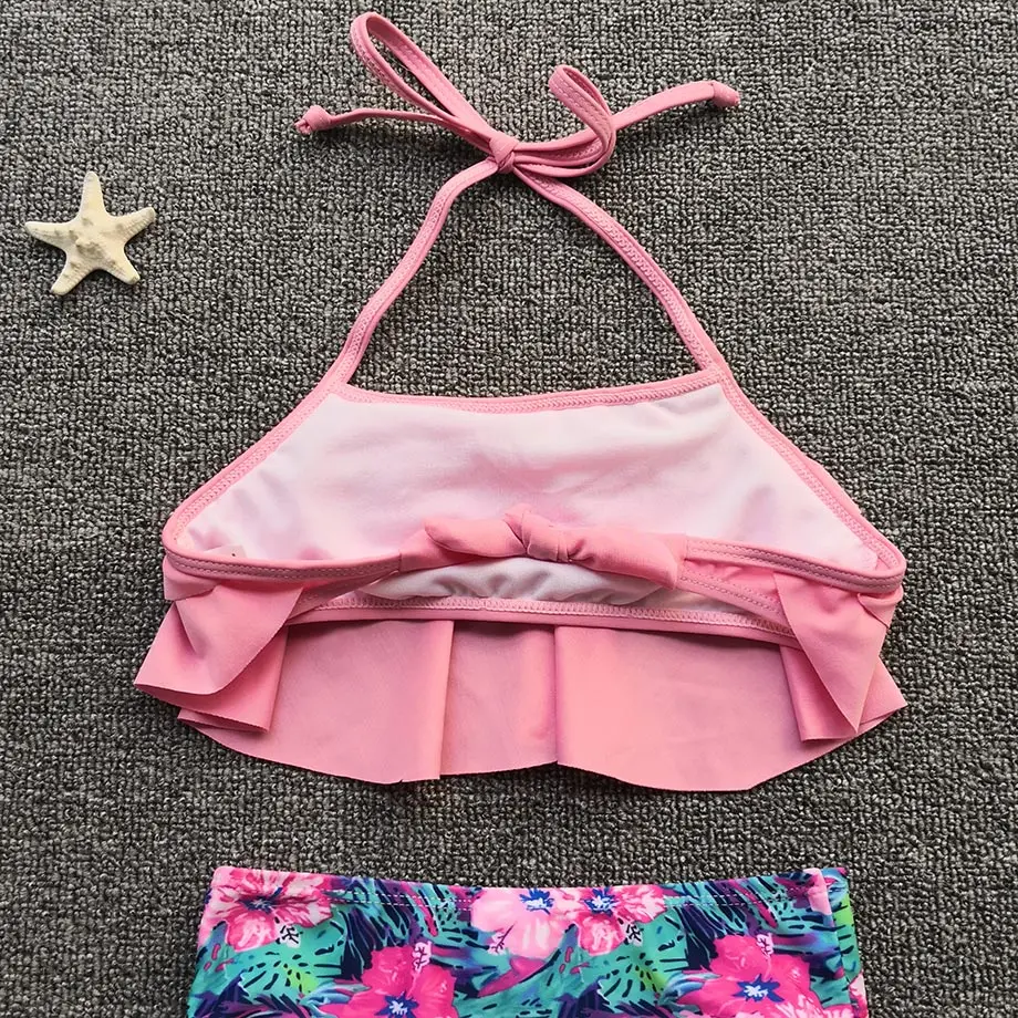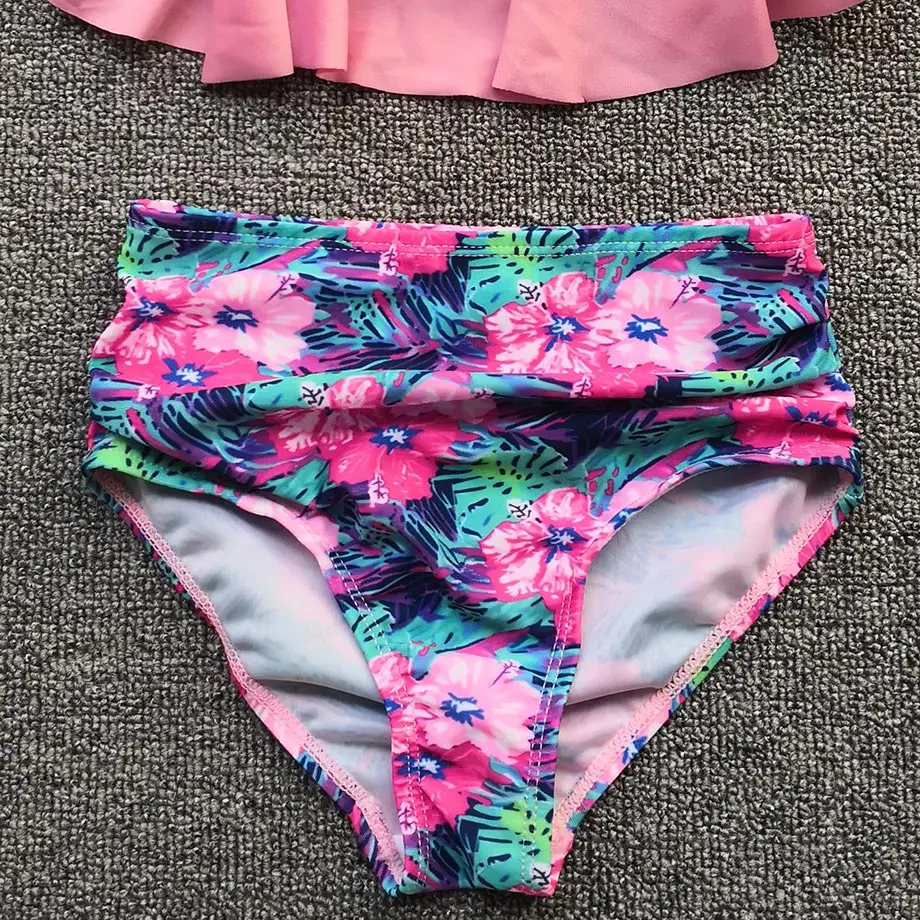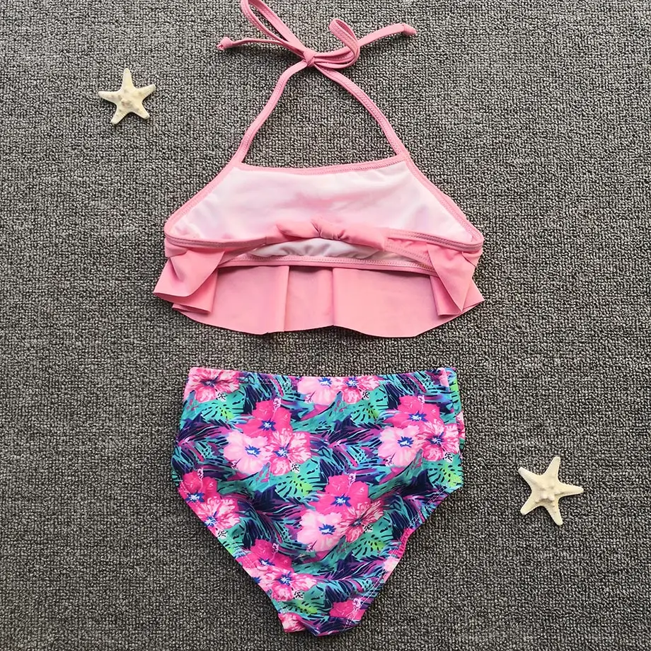 Цветочный купальник для девочек, купальный костюм для детей От 5 до 12 лет для девочек-подростков, комплект бикини с оборками комплект из двух предметов детская бандажный купальник для молодых девушек одежда для плавания