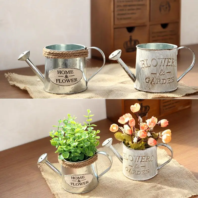 Retro Iron Flower Bucket Flower Plant Pot Succulent Planter Holder Bonsai Pot Vintage Flower Tub Balcony Home Desk DIY Decor