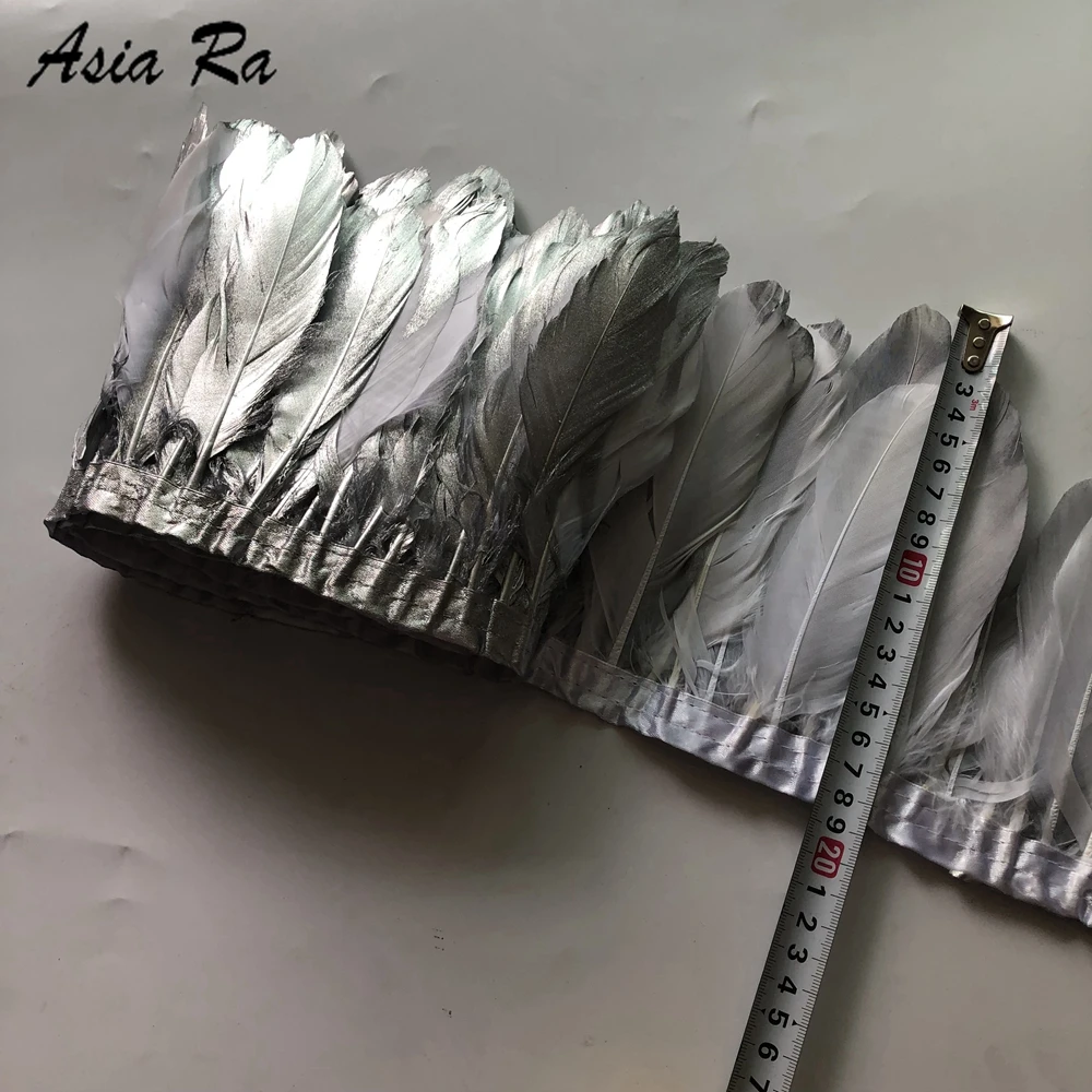 Размер: 13-20 см в ширину, 2 ярда в длину на ПК Количество: 2 ярда/лот Упаковка: 2 ярда на ПК на полиэтиленовые пакеты Цвет: цвет с золотыми наконечниками Примечания: варианты золотого и серебряного цвета, золото-только одна сторона, задняя сторона-белый цвет. Серебро также окрашивает только одну сторону, задняя сторона белого цвета. Качество: из-за перьев натуральные и настоящие, не сделанные машиной, так что более или менее будут иметь небольшие дефекты для некоторых шт. Но не будут иметь эффект для использования. Если вы не против этого, пожалуйста, подумайте дважды перед оплатой. Спасибо