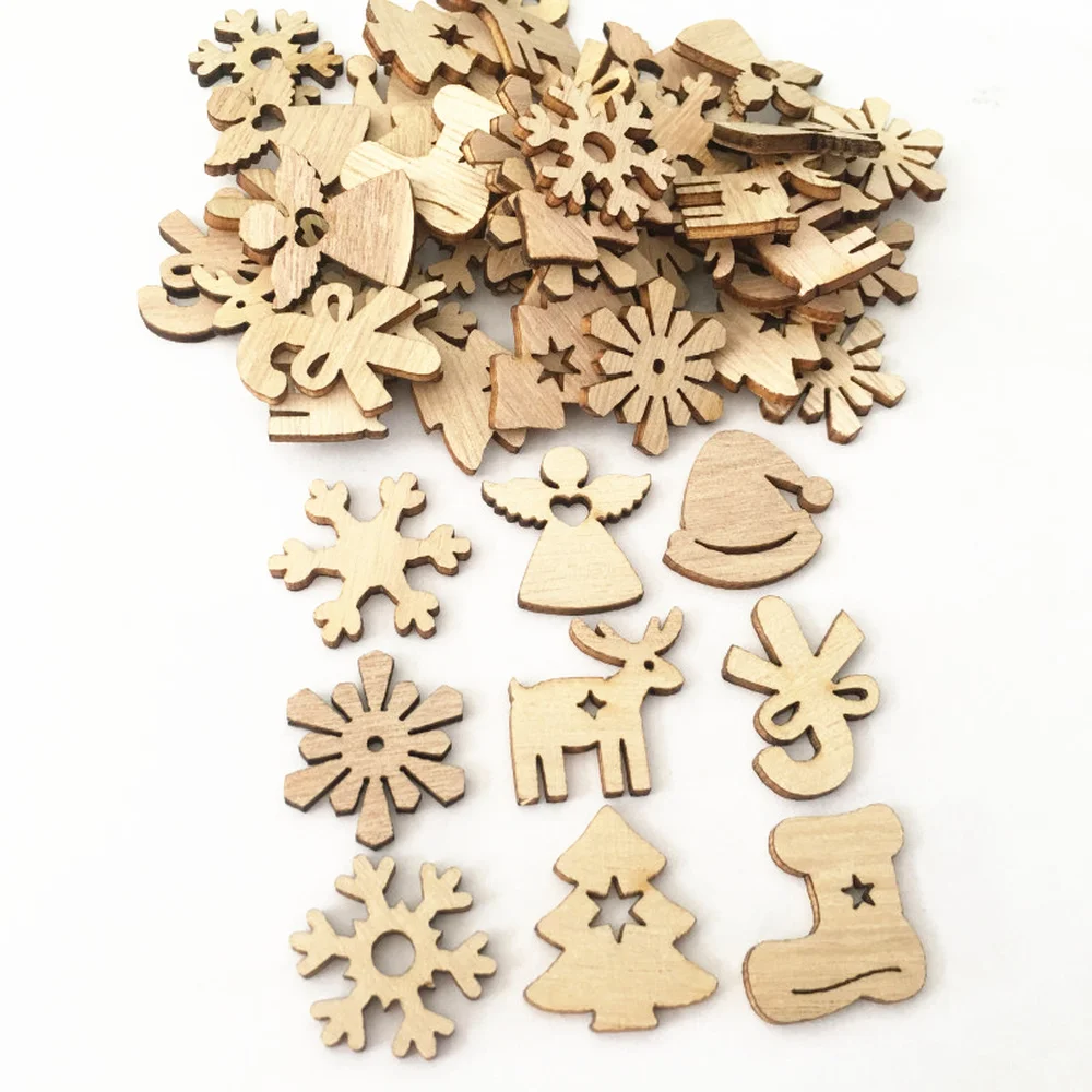 Фиолетовый100 шт рождественские украшения мини дерево украшения Санта-Клаус Снеговик Олень деревянные подвесные рождественские украшения для дома новый год,