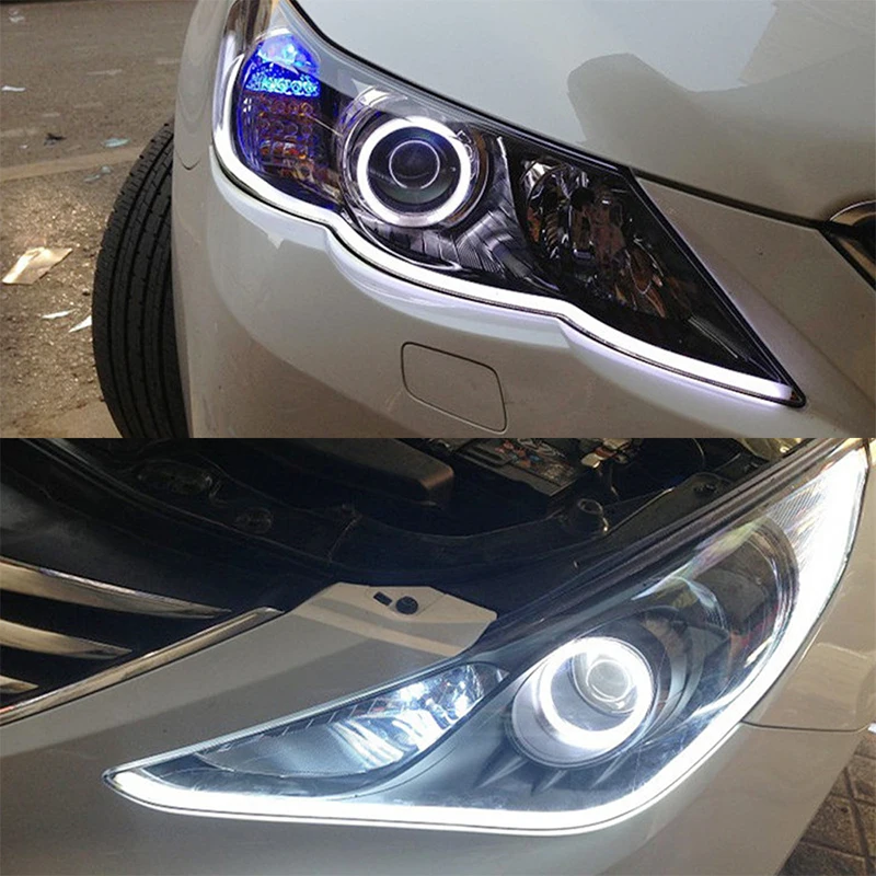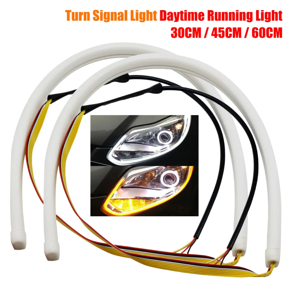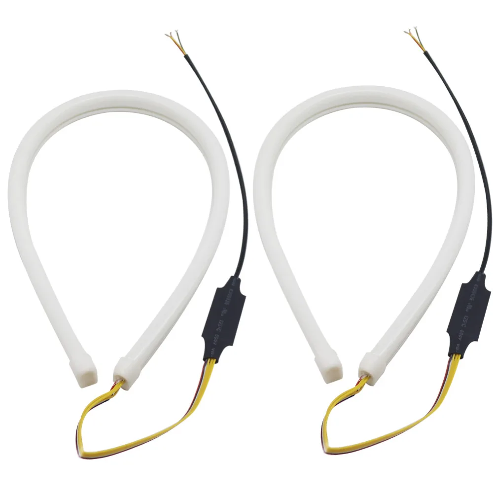 2 шт./компл. 30 см 45 см 60 см поворотный сигнальный светильник гибкий силиконовый Автомобильный светодиодный ленточный светильник s дневной ходовой светильник с трубой авто DRL белый + желтый