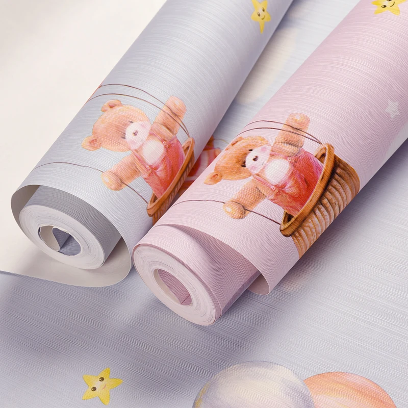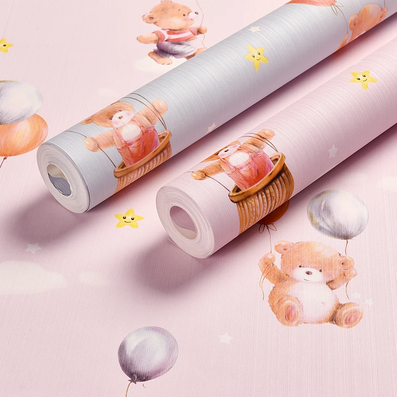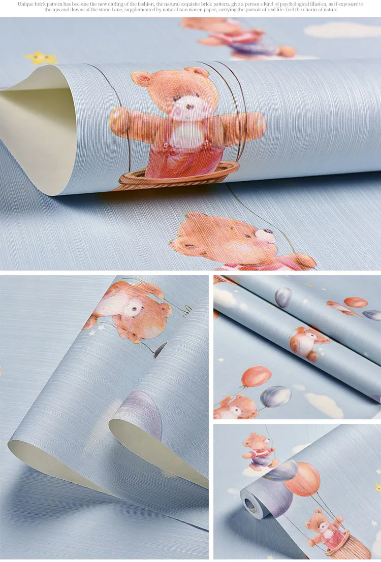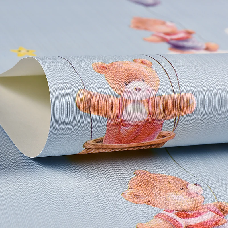 Современные обои с изображением медведя из мультфильма для стен детской комнаты