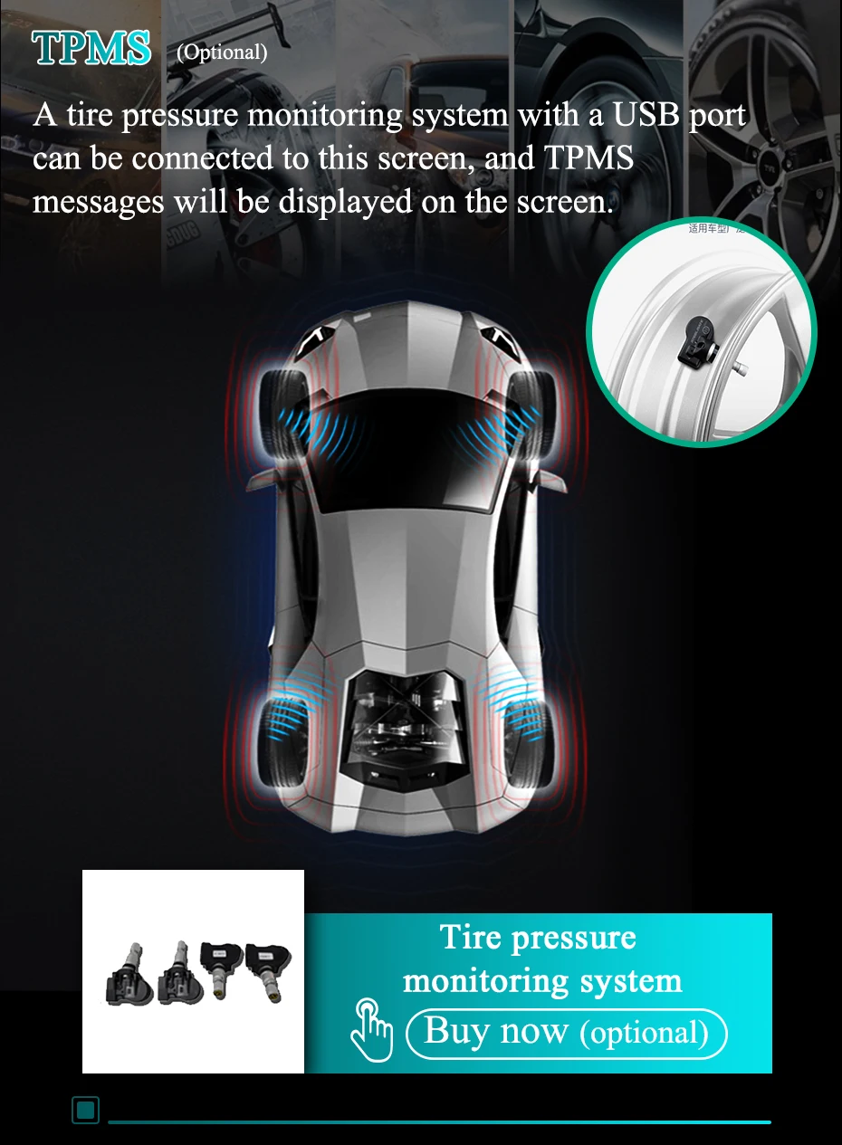 К этому экрану может быть подключена система контроля давления в шинах с usb-портом, и на экране будут отображаться сообщения TPMS.