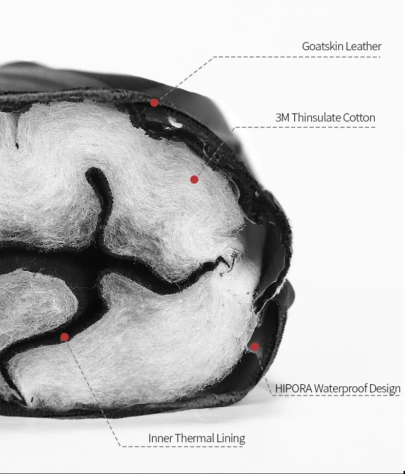Кожа козьей кожи Задняя сторона 250 г/м2 3 м Thinsulate Пальмовая 40 г/м2 3 м Thinsulate Внешний водонепроницаемый дизайн Средняя температура блокировки Внутренняя тепловая конструкция