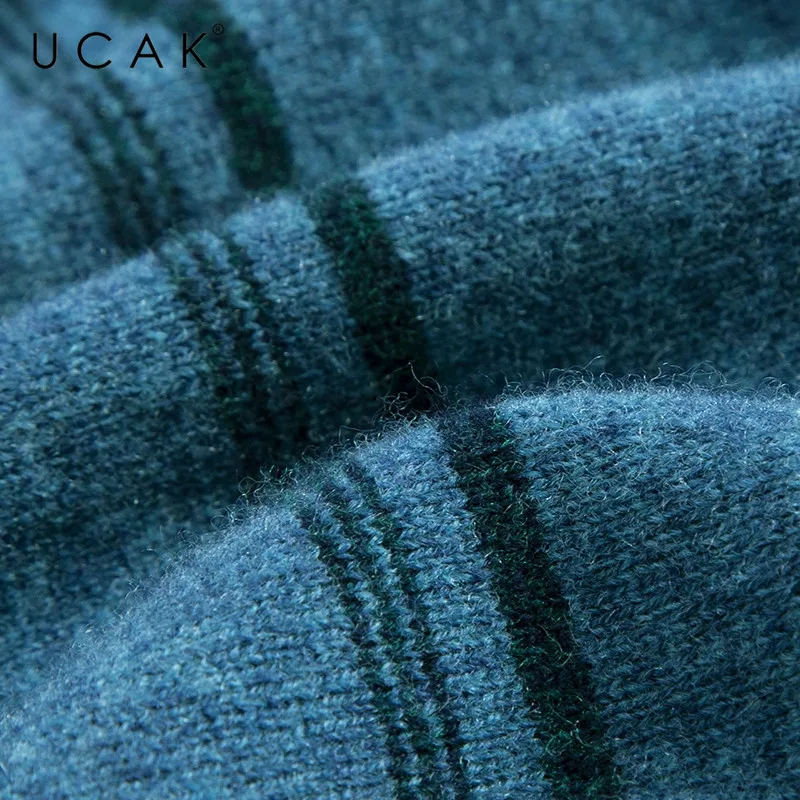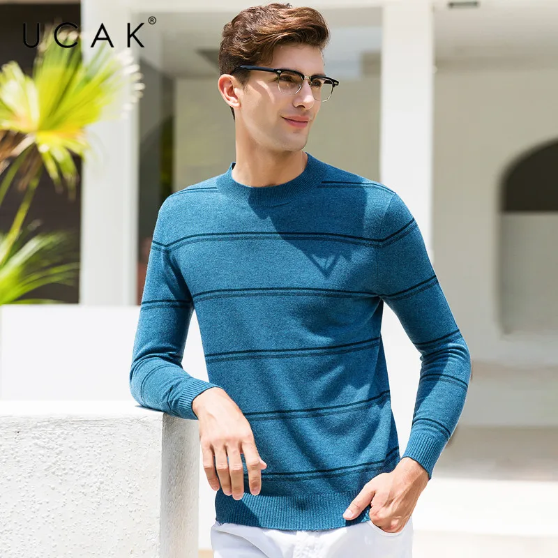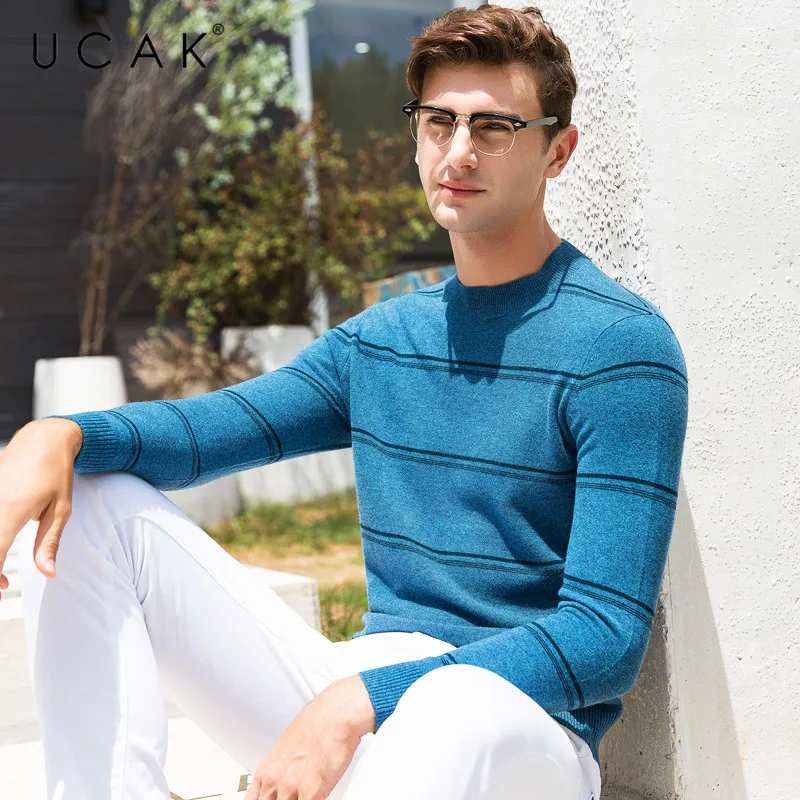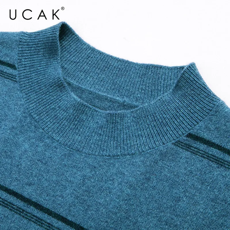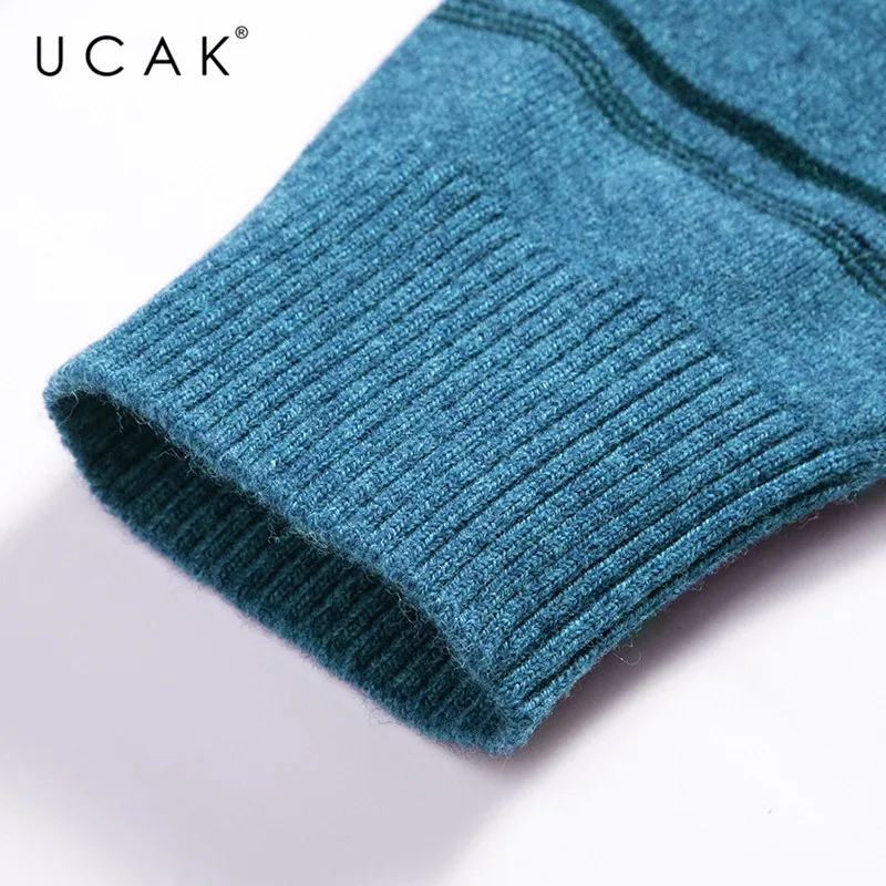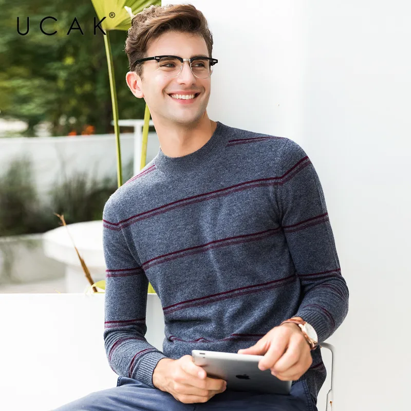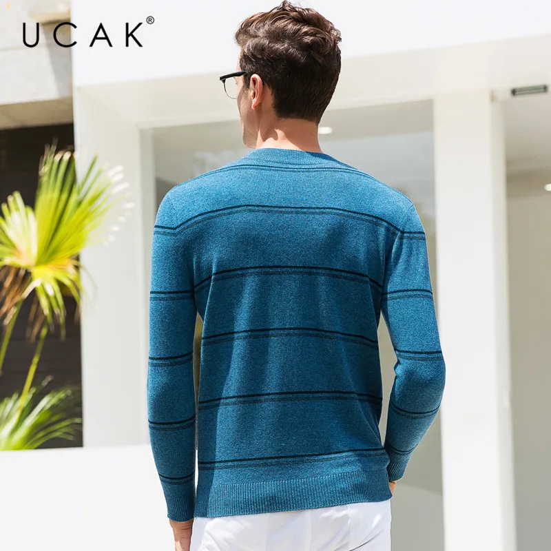 UCAK бренд 100% мериносовой шерстяной мужской свитер Повседневный Полосатый пуловер с круглым вырезом мужские теплые кашемировые свитера осень-зима Pull Homme U3072