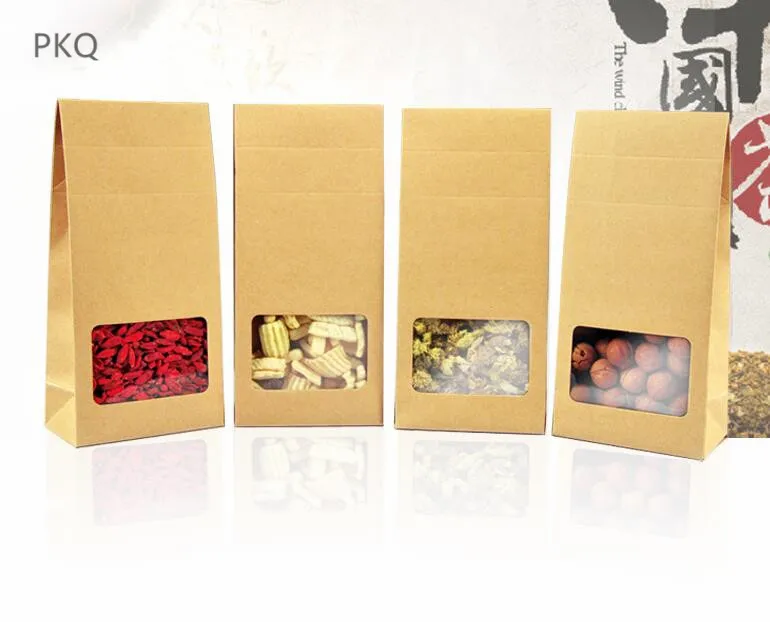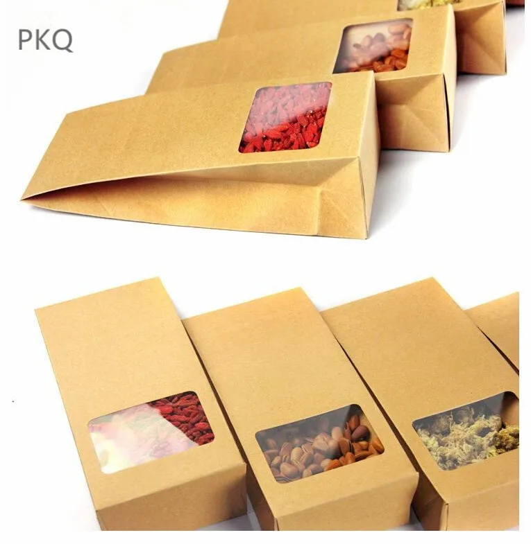 10pcs Packing Kraft Paper Window Bag Stand up Gift Dried Food Fruit Tea packaging Pouches Bags Baking Takeaway Food Package box