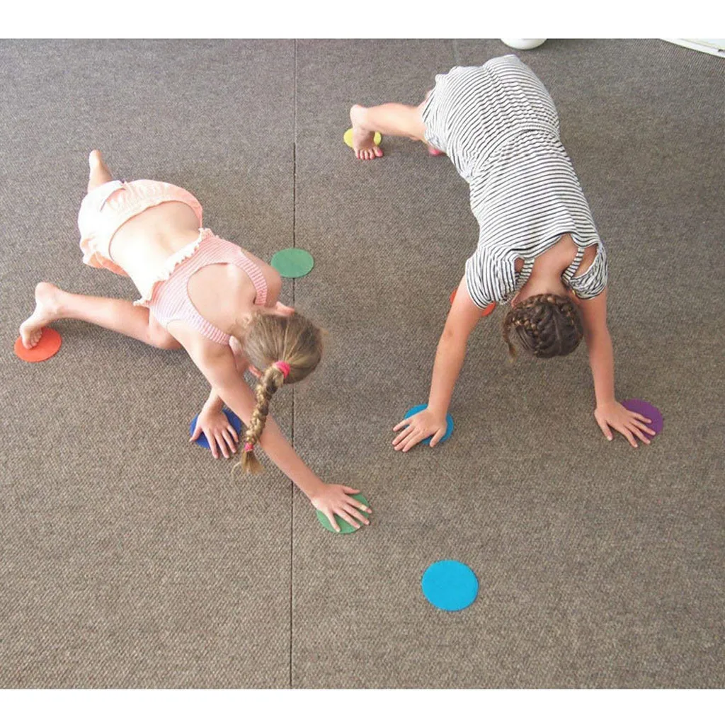 3. Поместите эти нейлоновые ковры сидя пятна на полу, чтобы указать правильный интервал, когда ученики выстраиваются. Вы также можете расположить их на полу для веселой игры в Твистер.