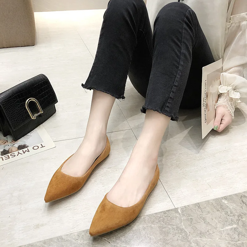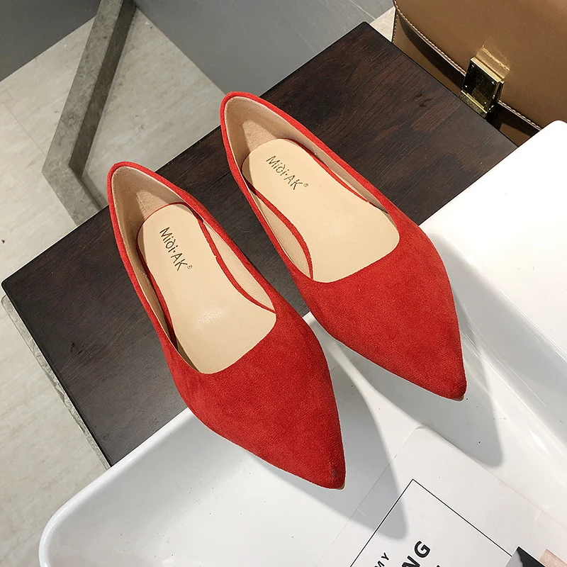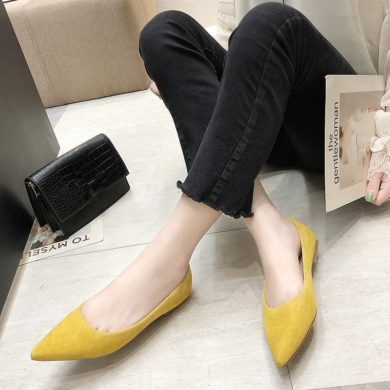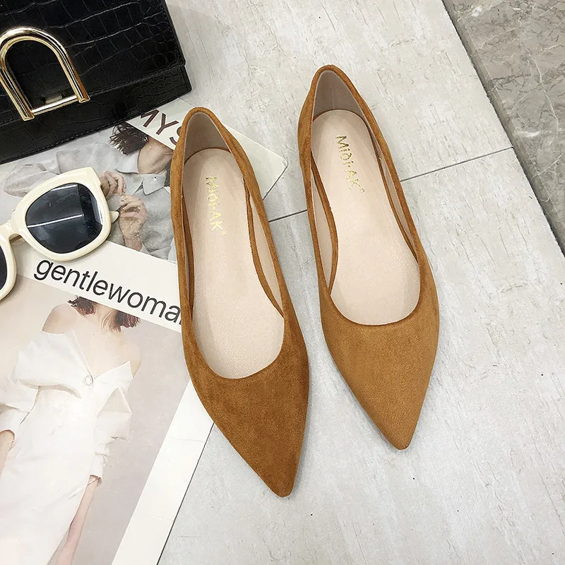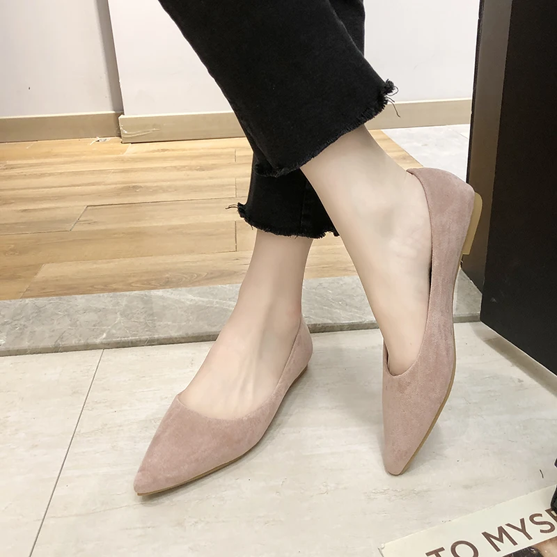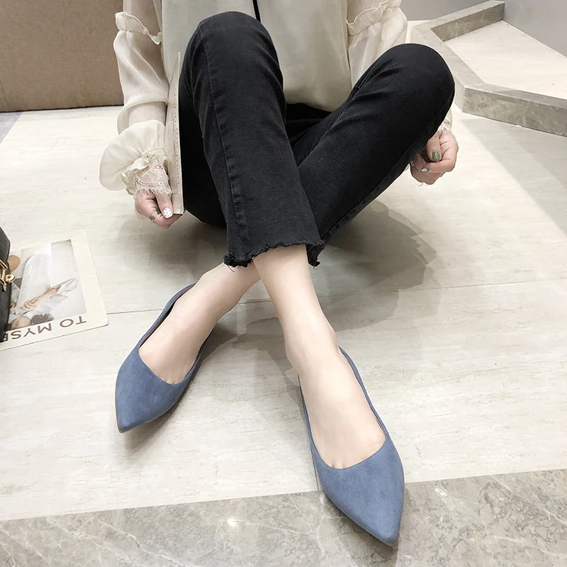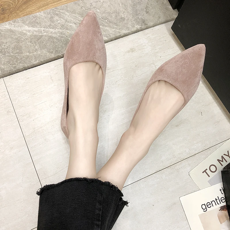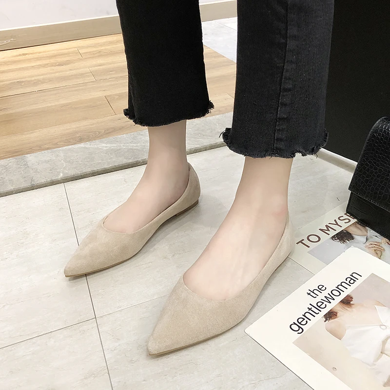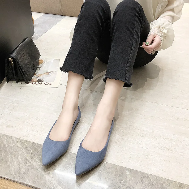 Обувь на плоской подошве; сезон весна-осень; модная обувь с острым носком; Женская замшевая обувь на плоской подошве с закрытым носком; женская обувь; большой размер 41