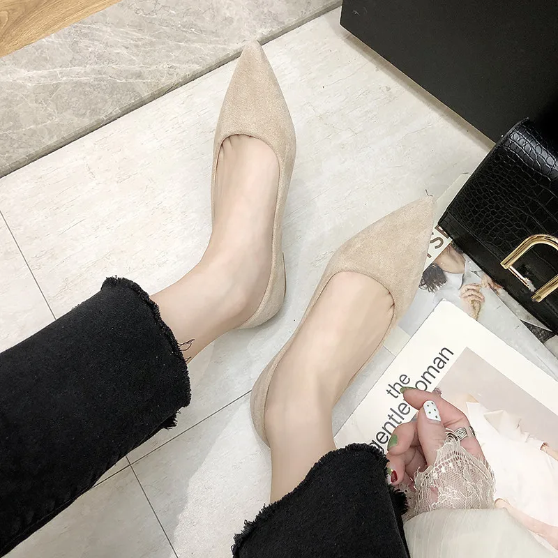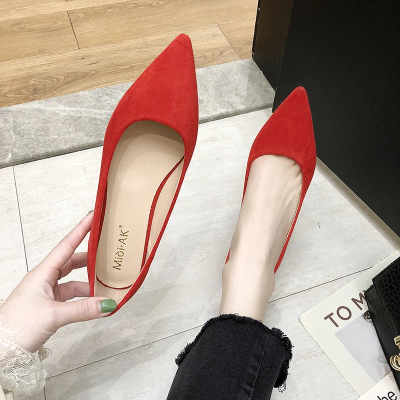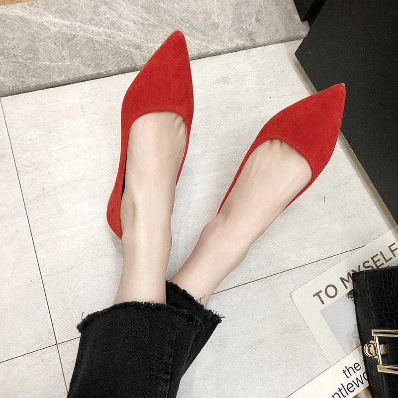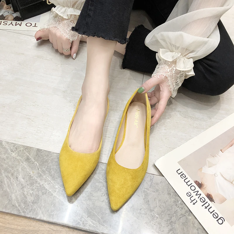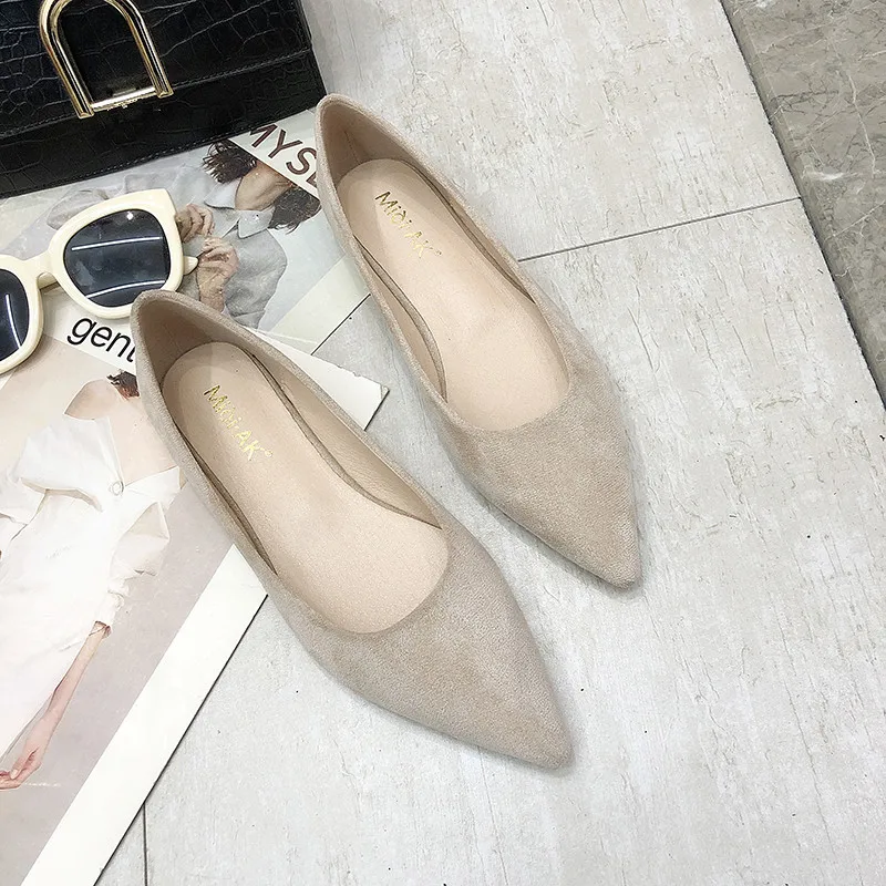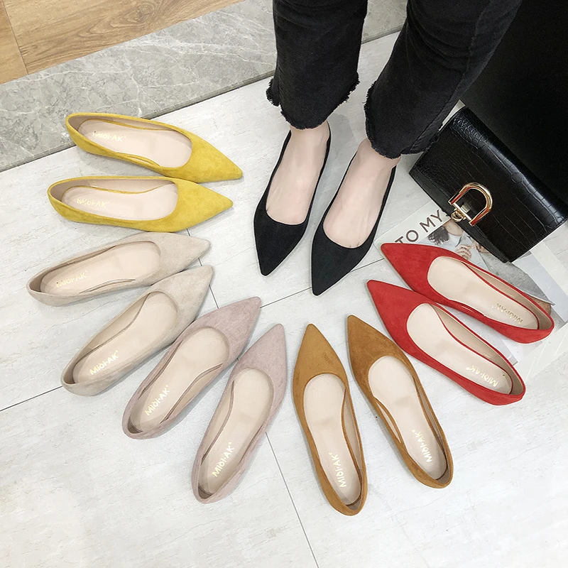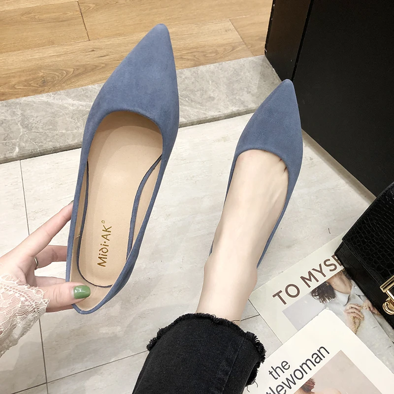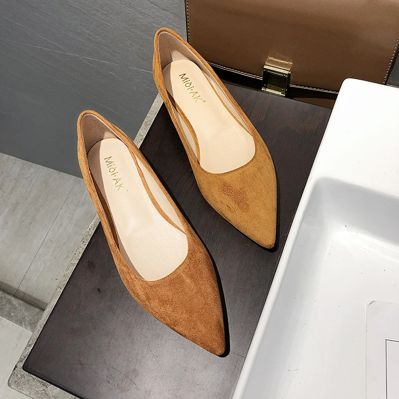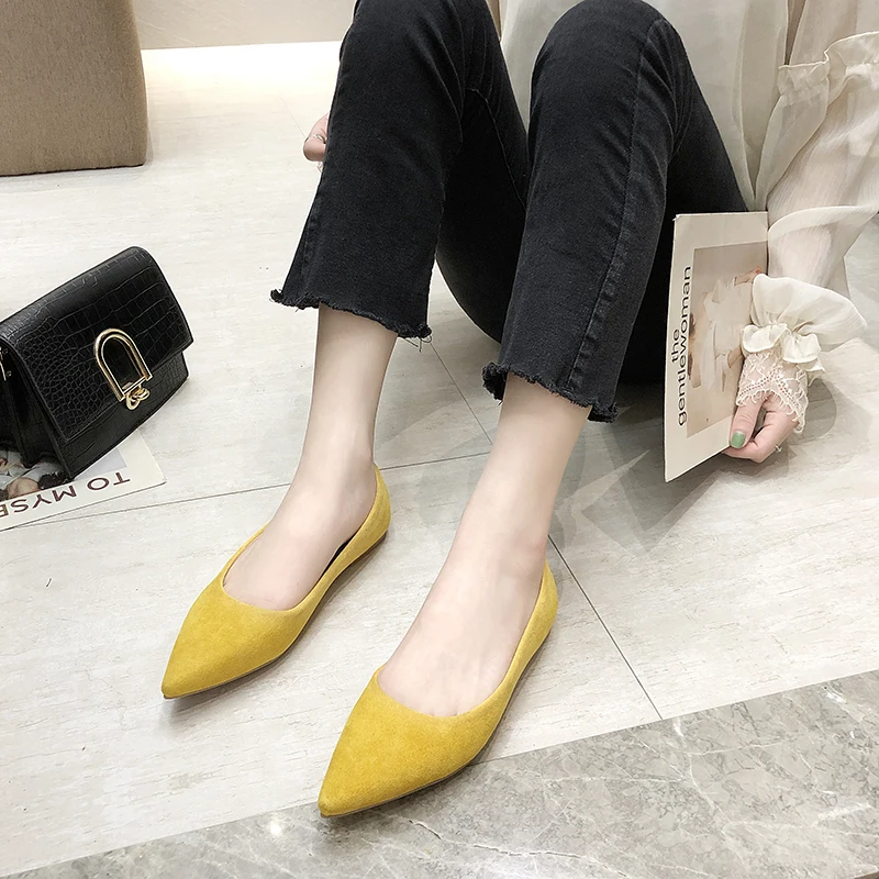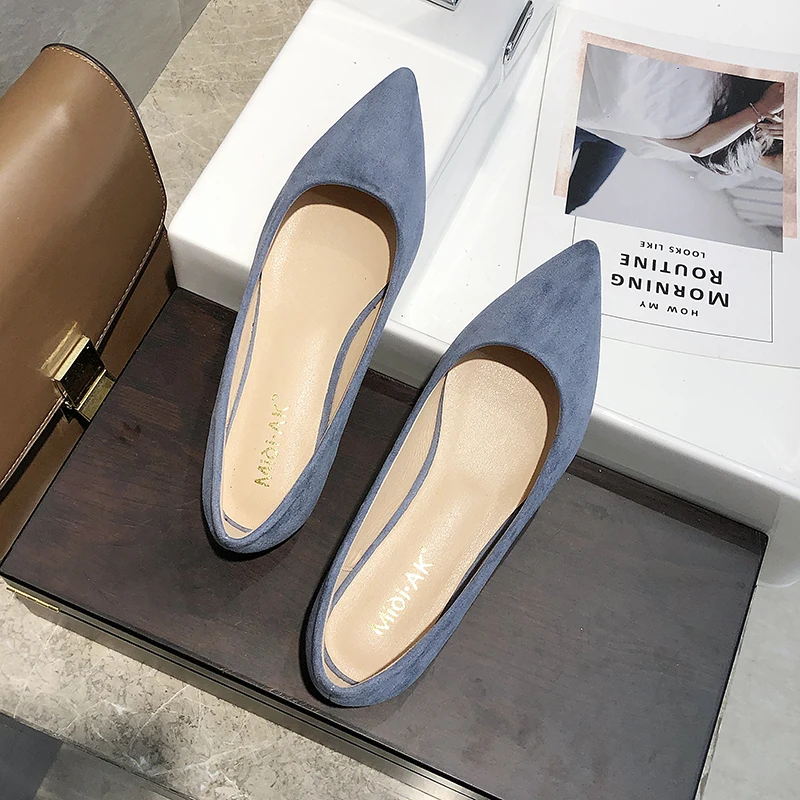 Обувь на плоской подошве; сезон весна-осень; модная обувь с острым носком; Женская замшевая обувь на плоской подошве с закрытым носком; женская обувь; большой размер 41