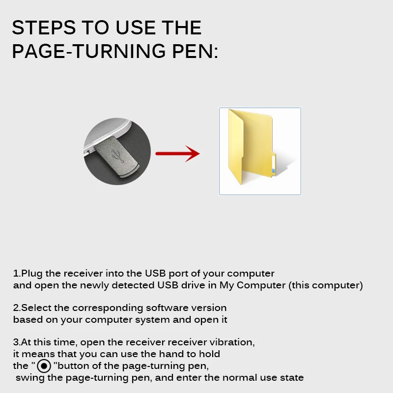 No need to download software, clicker remote has accompanied software in the extra TF card in the USB dongle, just click the icon then switch on presentation pointer and ready to go (The same operating method on Mac, just need one more step to move the icon to Applications on Mac).