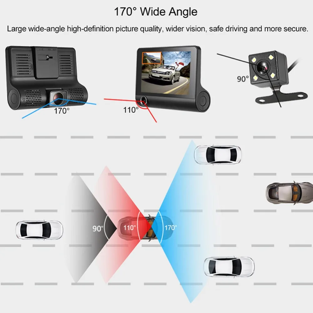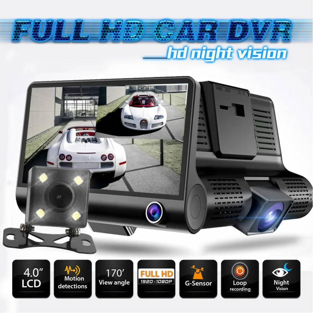 Видео высокой четкости с низким освещением, есть три камеры, фронтальная камера Full HD 1080P, камера заднего вида и внутренняя камера 720P