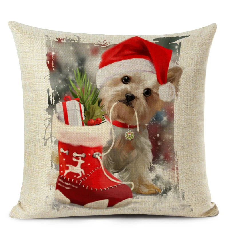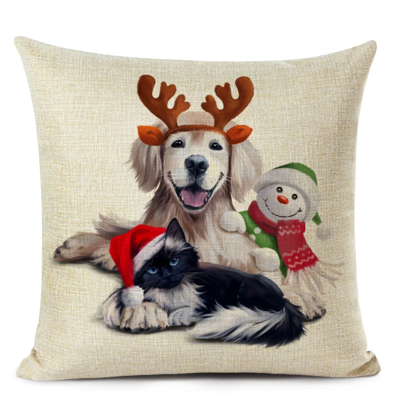 Рождественский Чехол на подушку, декоративная подушка, чехол, милая собака, кошка, принт, наволочка для украшения гостиной