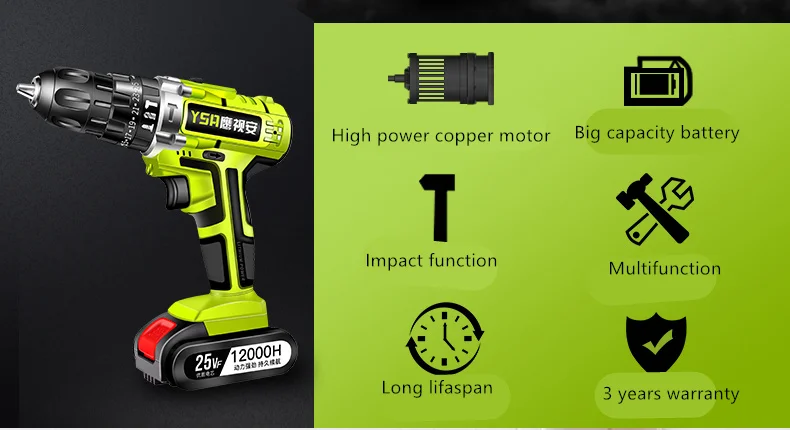 4D Смарт сверлильный патрон 30 минут quick charge Двойная конструкция подшипника Двухскоростной 25 передач 0-950r/мин Время работы около 6 часов 3 года гарантии