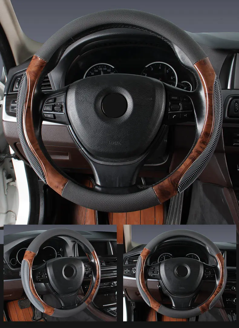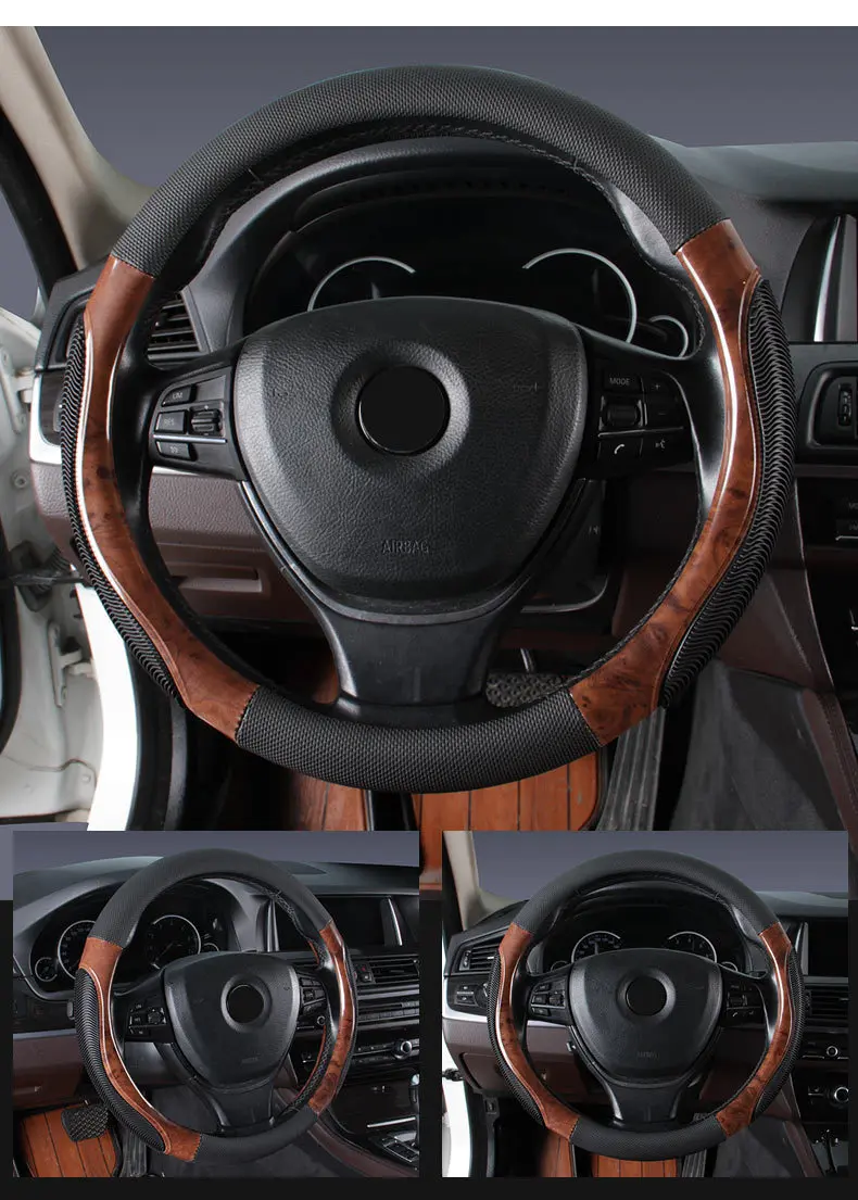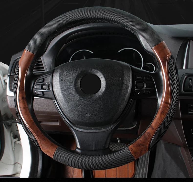 Car Steering Wheel Cover Wood Grain Anti-slip Breathable Braid Steering Wheel Car Styling Accessories For Most Vehicle