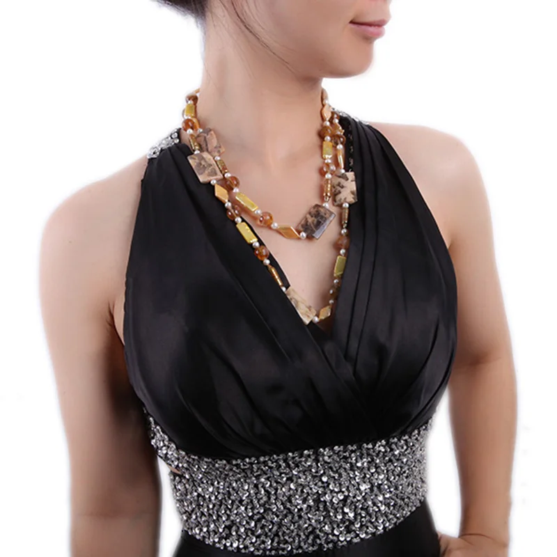 This beautiful opera necklace is made of freshwater pearl, interspersed with tiger iron jasper and red stones. This combination is very unique. It is a long necklace with no clasp used, a perfect combinition of fashion and classics. This necklace’s unique and generous design is the classic fashion with a product that combines the beauty.Package:exquisite Gift silk bag,if you need box,contact us please