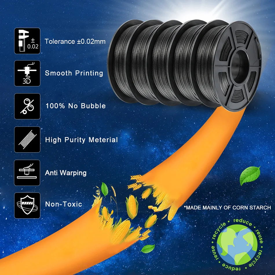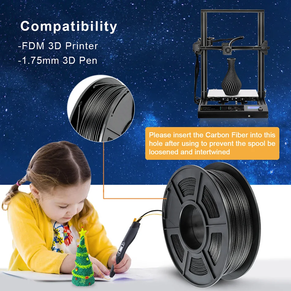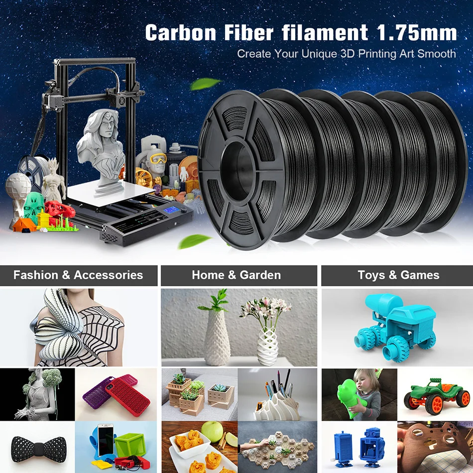 PLA углеродное волокно смесь углеродного волокна материал, нетоксичный, легко питаться, легко формируется. Он обладает жесткостью и твердостью.
