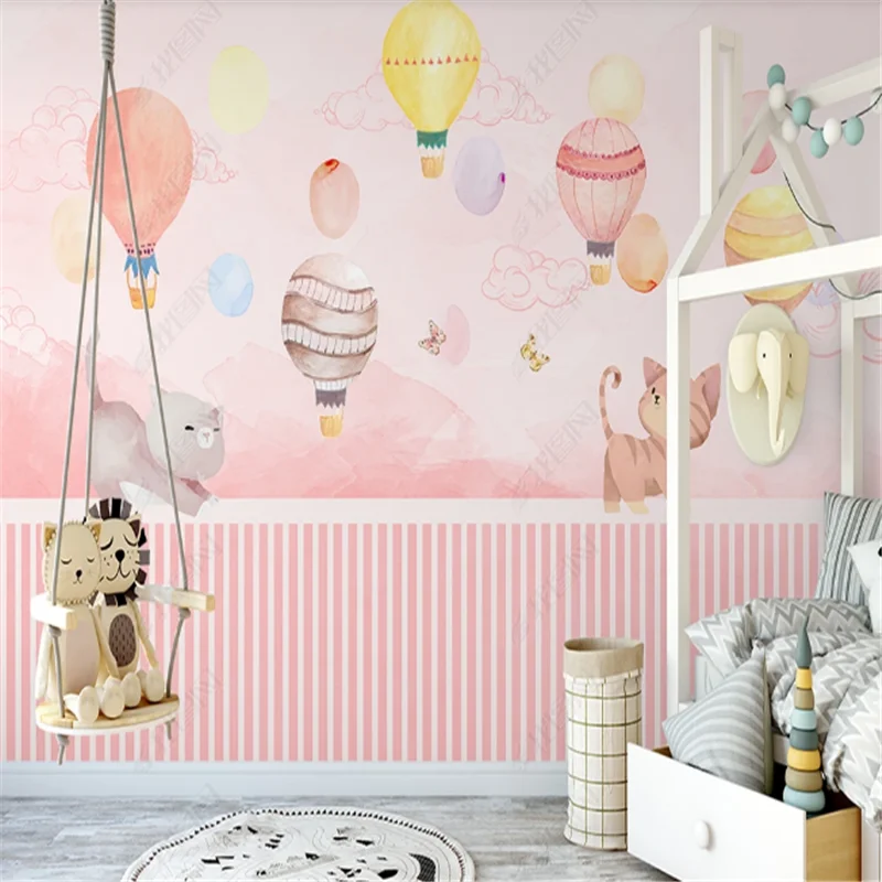Обои для домашнего декора, обои для детской комнаты, розовые Мультяшные облака, воздушный шар, детская комната, фоновые обои
