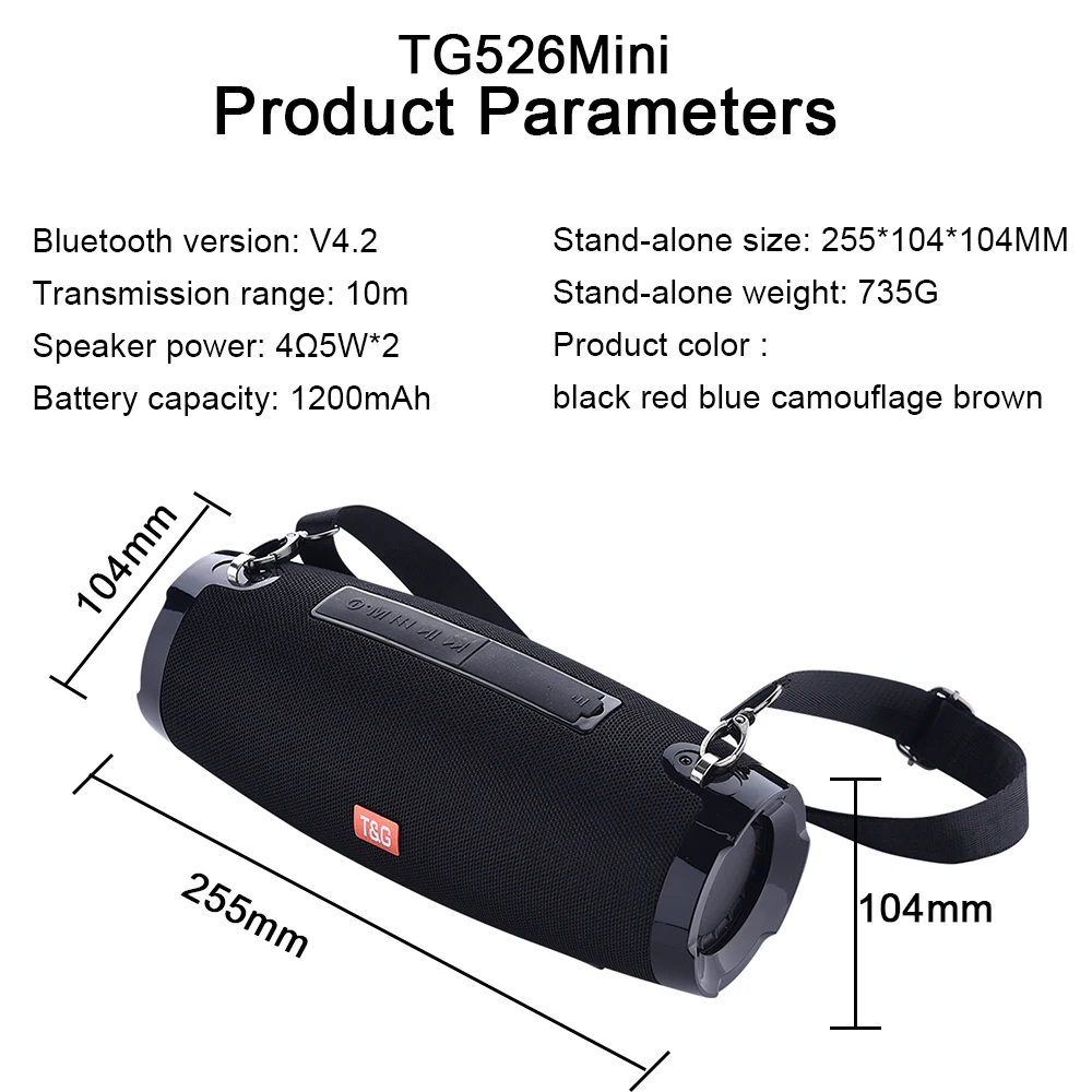 Версия Bluetooth: V4.2 Диапазон беспроводной передачи: 10 метров Соотношение Аудио-шум: ≥90 дБ Емкость аккумулятора: 1200 мАч Встроенное Напряжение: 7,4 В Нормальное воспроизведение громкости: 4 H ~ 9 H Характеристики динамика: 52 мм * 2 Мощность динамика: 4Ω/10 Вт * 2 Частотный диапазон: 100 Гц-20 кГц Размер: 104*104*255 мм Напряжение зарядки: 5 В/2 А.
