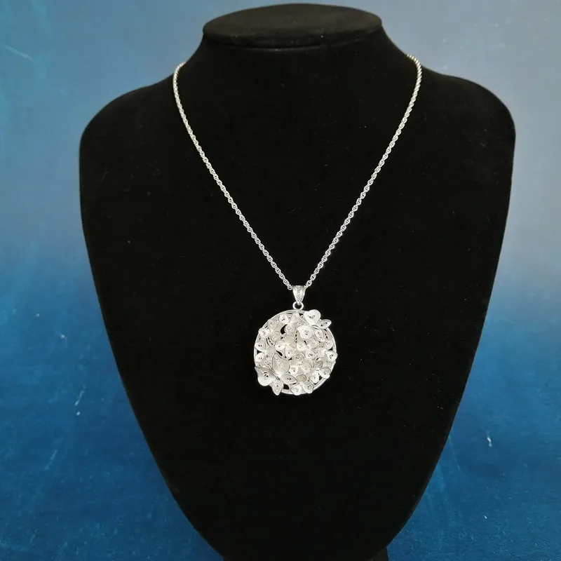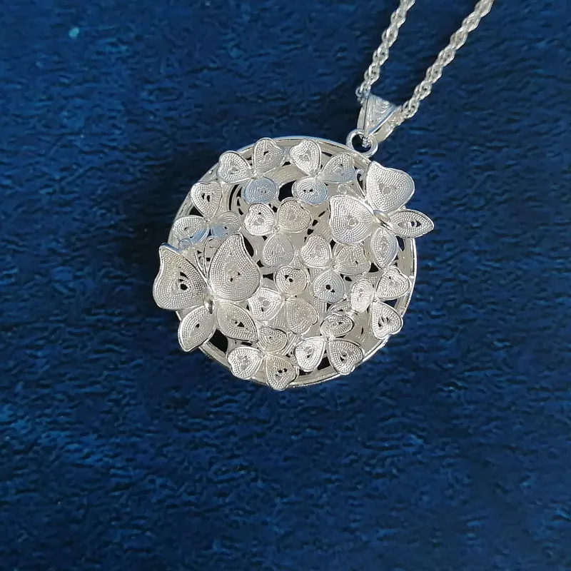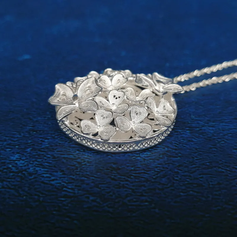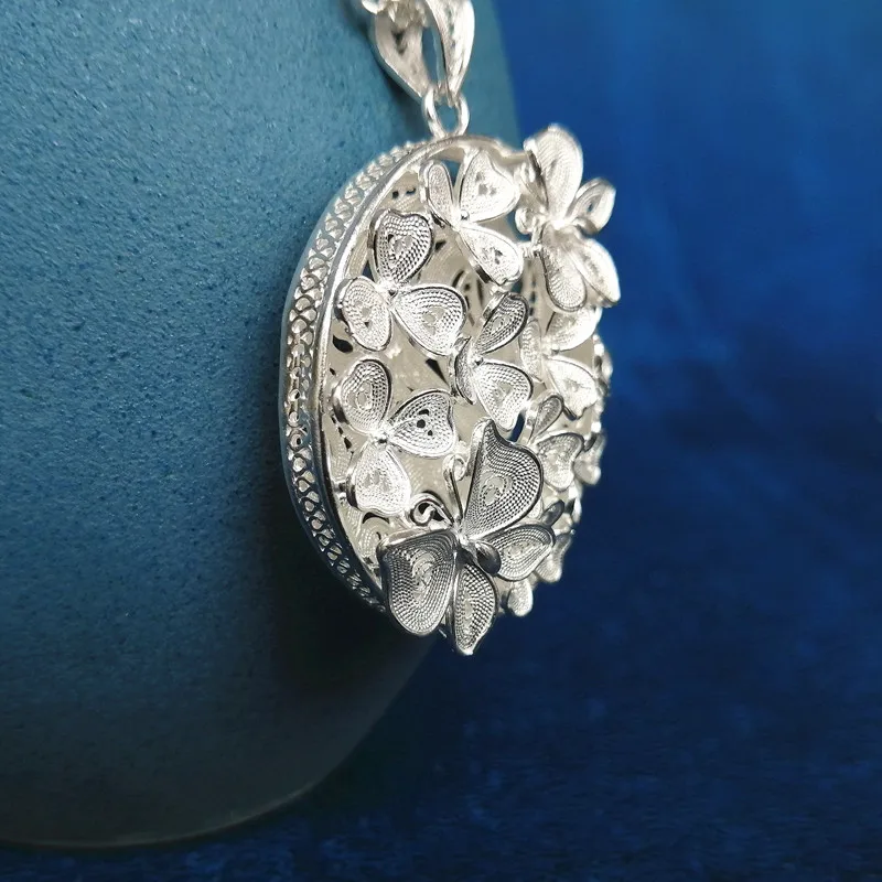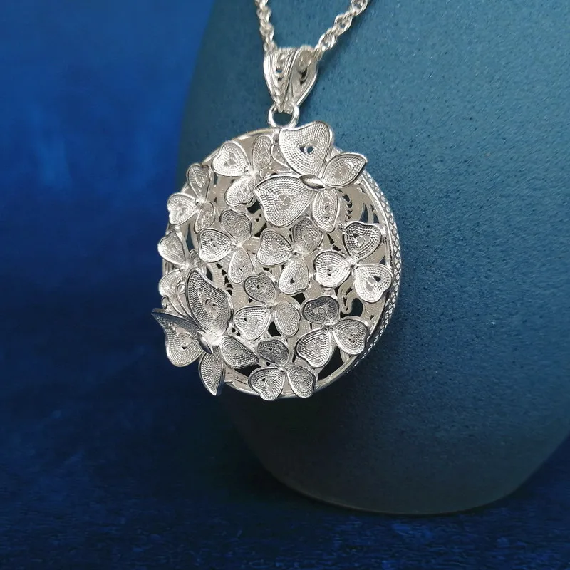 999 Стерлинговое серебро кулон цветок бабочка Круглые Женские кулоны ожерелье винтажное Miao серебряные ювелирные изделия ручной работы этническое очарование