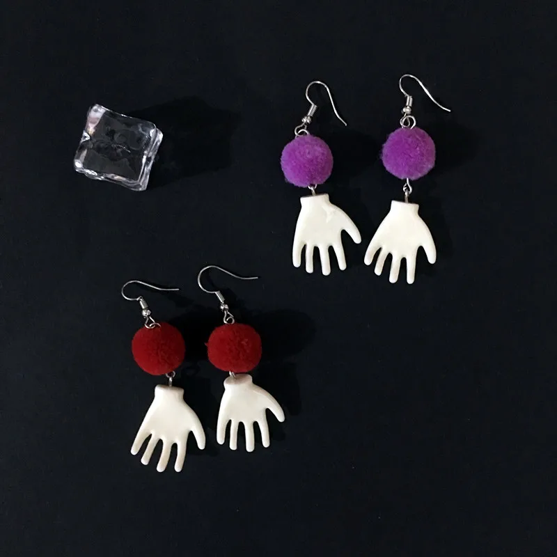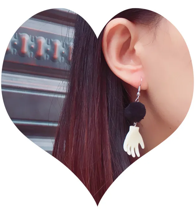 Веселые ретро Хэллоуин маленькие пальмовые волосы мяч серьги для женщин 2019 корейские длинные земли классные клипсы в стиле панк ювелирные украшения подарок на праздник
