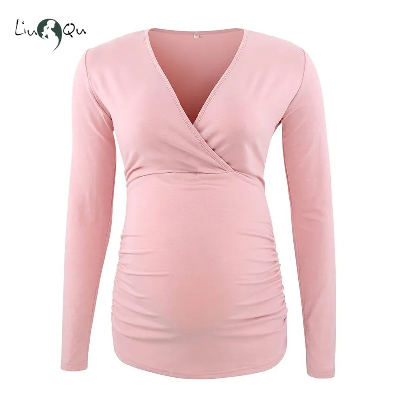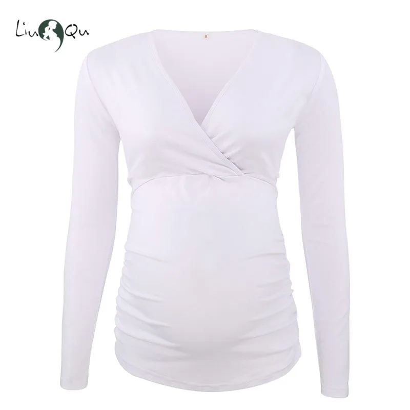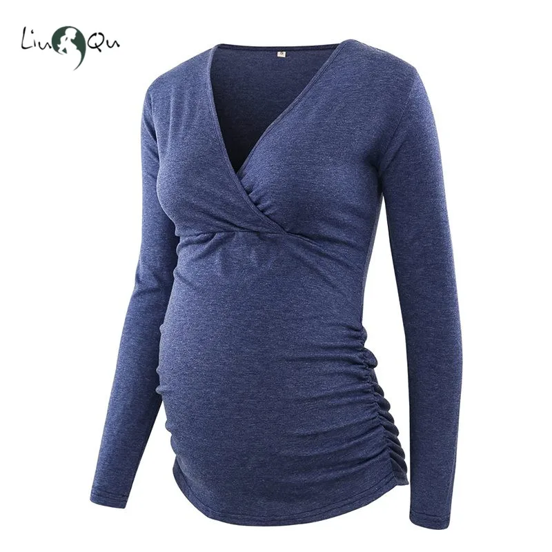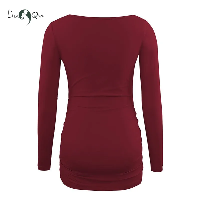 Эта рубашка для беременных изготовлена из мягкой и эластичной ткани из спандекса, которая спроектирована с морщинами на боку живота, чтобы удовлетворить ваш растущий живот.