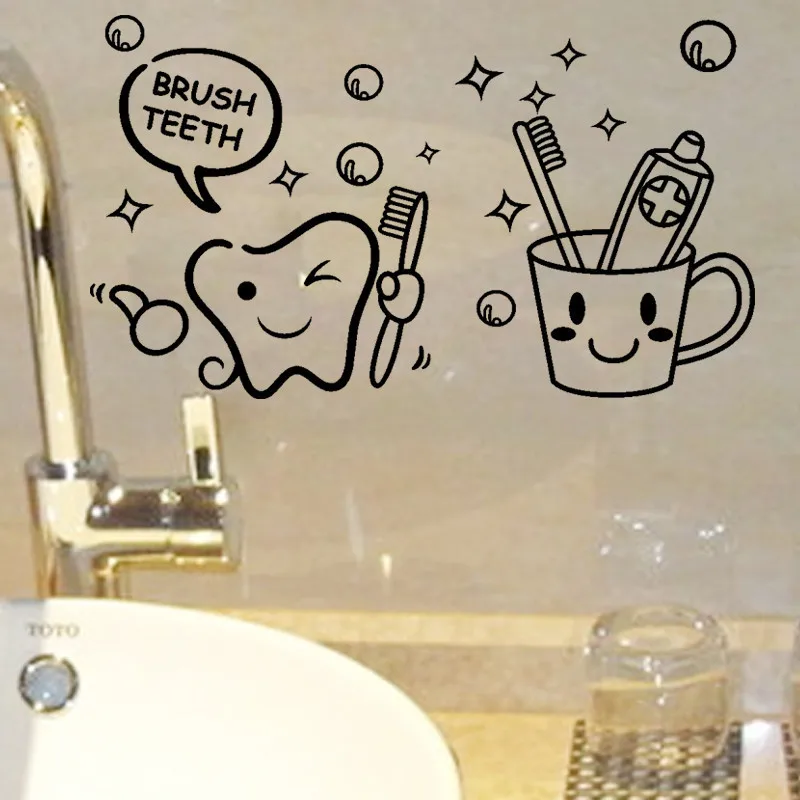 Милые, современные, милые, Цена за штуку, зубы, милый домашний декор, настенные Стикеры, Детская ванная комната, санузел, прачечная, комната, водонепроницаемый, росписи, искусство