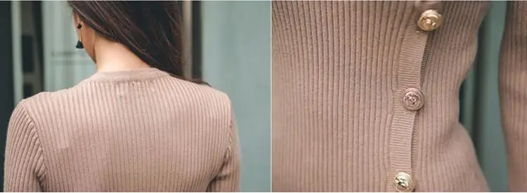 Женское сексуальное зимнее трикотажное обтягивающее платье на пуговицах с открытым разрезом, длинный рукав, теплый тонкий свитер, платье-футляр, Vestidos DF448