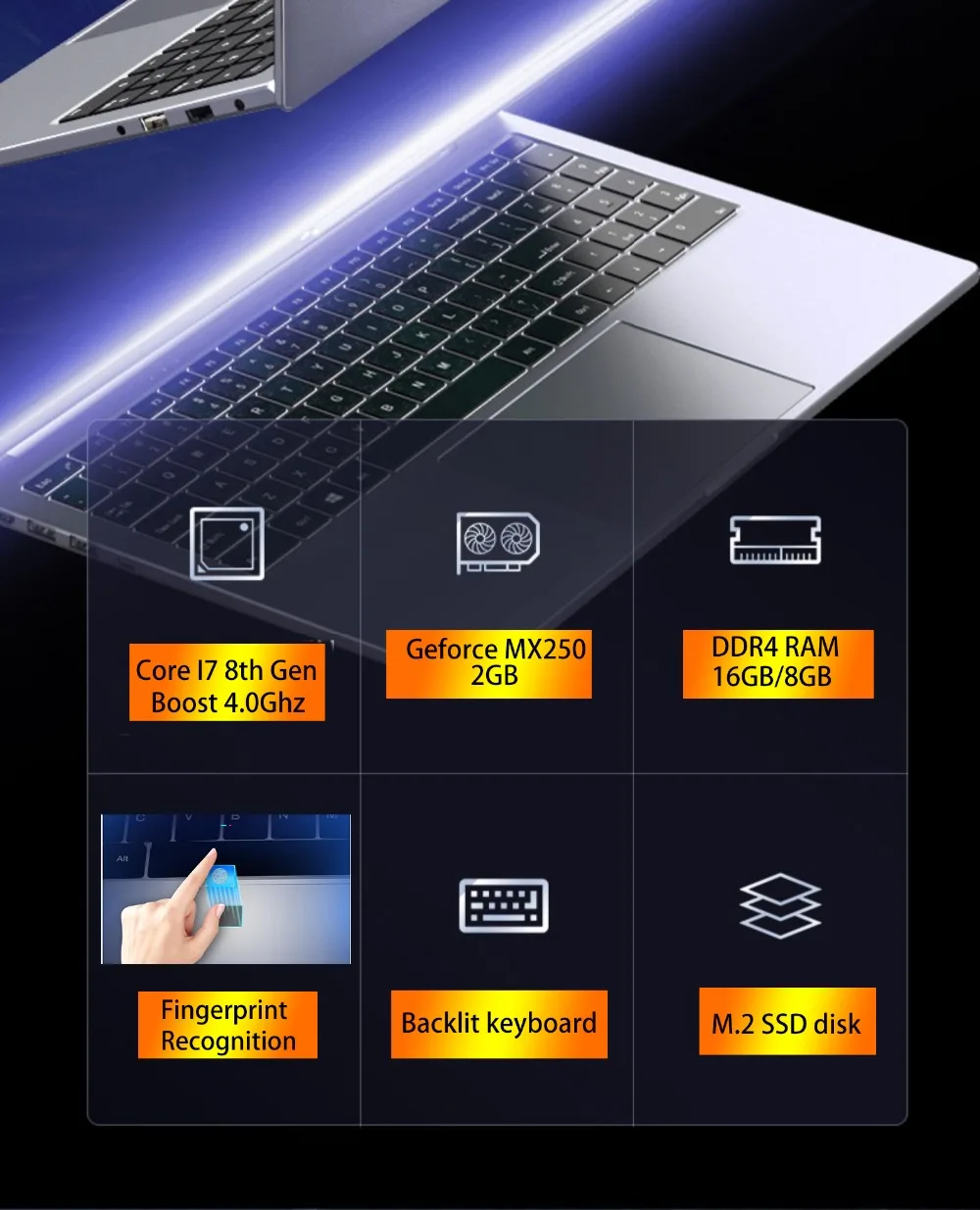 Ezbook I7815 Plus оснащен клавиатурой с подсветкой, которая обеспечивает превосходный ввод текста даже в темноте, с высокотехнологичным распознаванием отпечатков пальцев.
