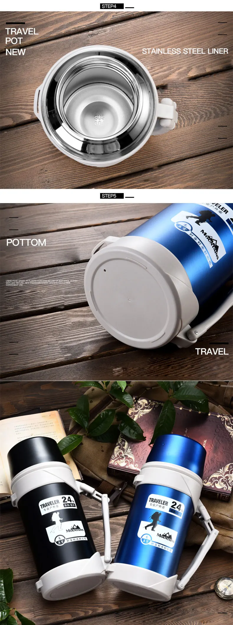 Frascos de vatio termostatos L de gran tamateno de acero inoxidable al aire libre Taza Termo botella termo cafet termo tazas hervidor