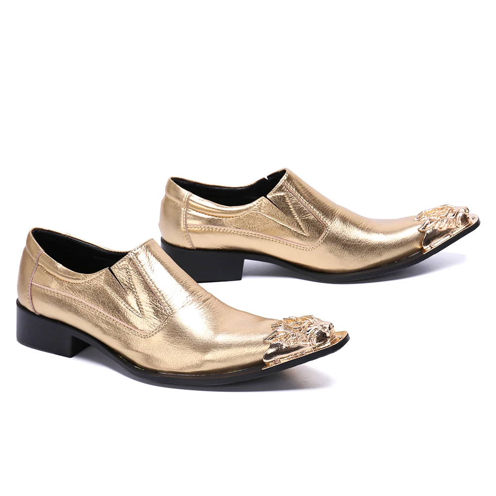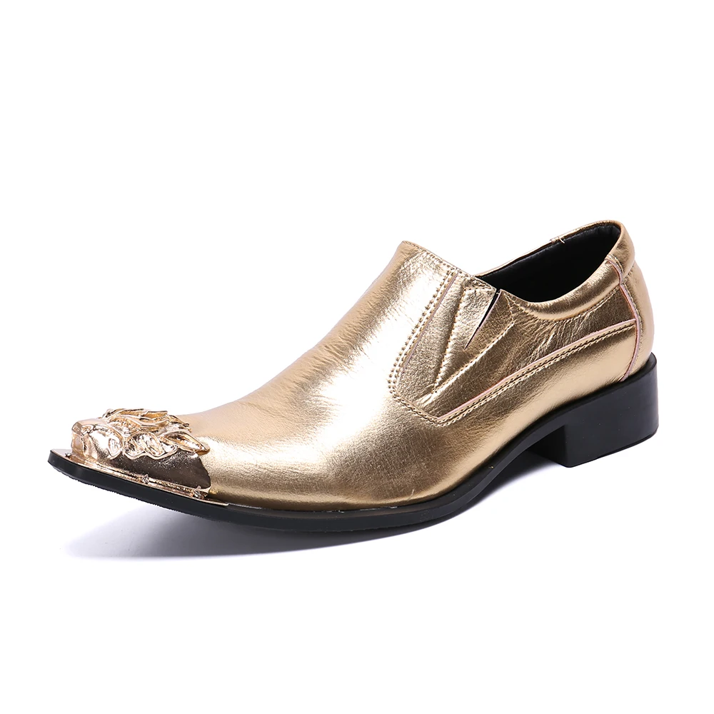 Роскошные золотистые мужские туфли в итальянском стиле; Обувь без застежки; Мужская офисная обувь; Свадебные туфли с закрытым носком; sapato social masculino