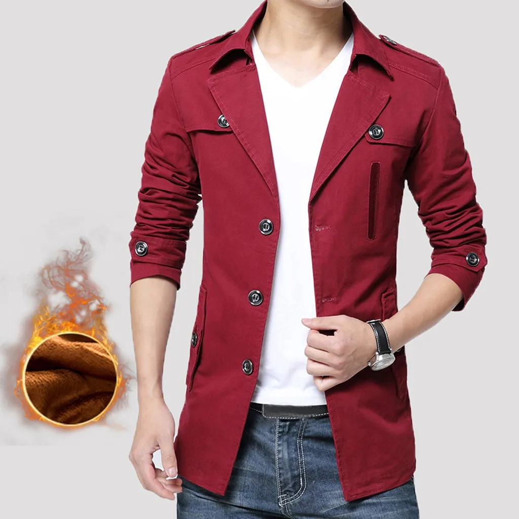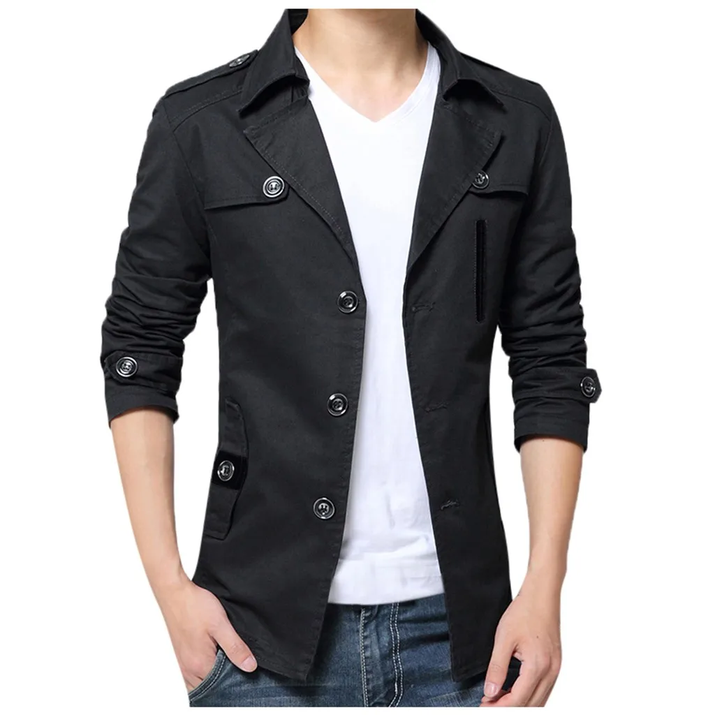 Мужская осенне-зимняя повседневная модная однотонная куртка на пуговицах, верхняя одежда, пальто, топы