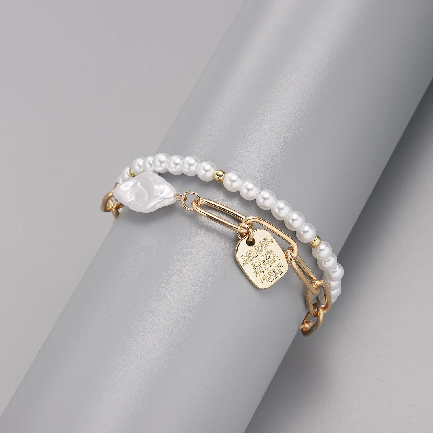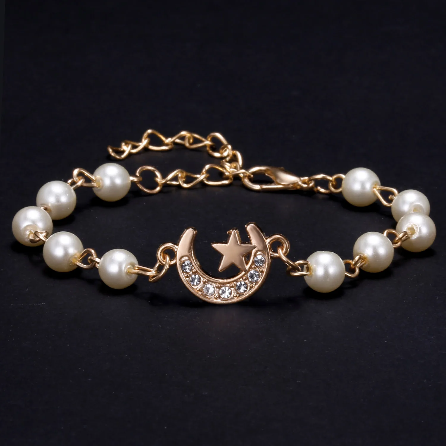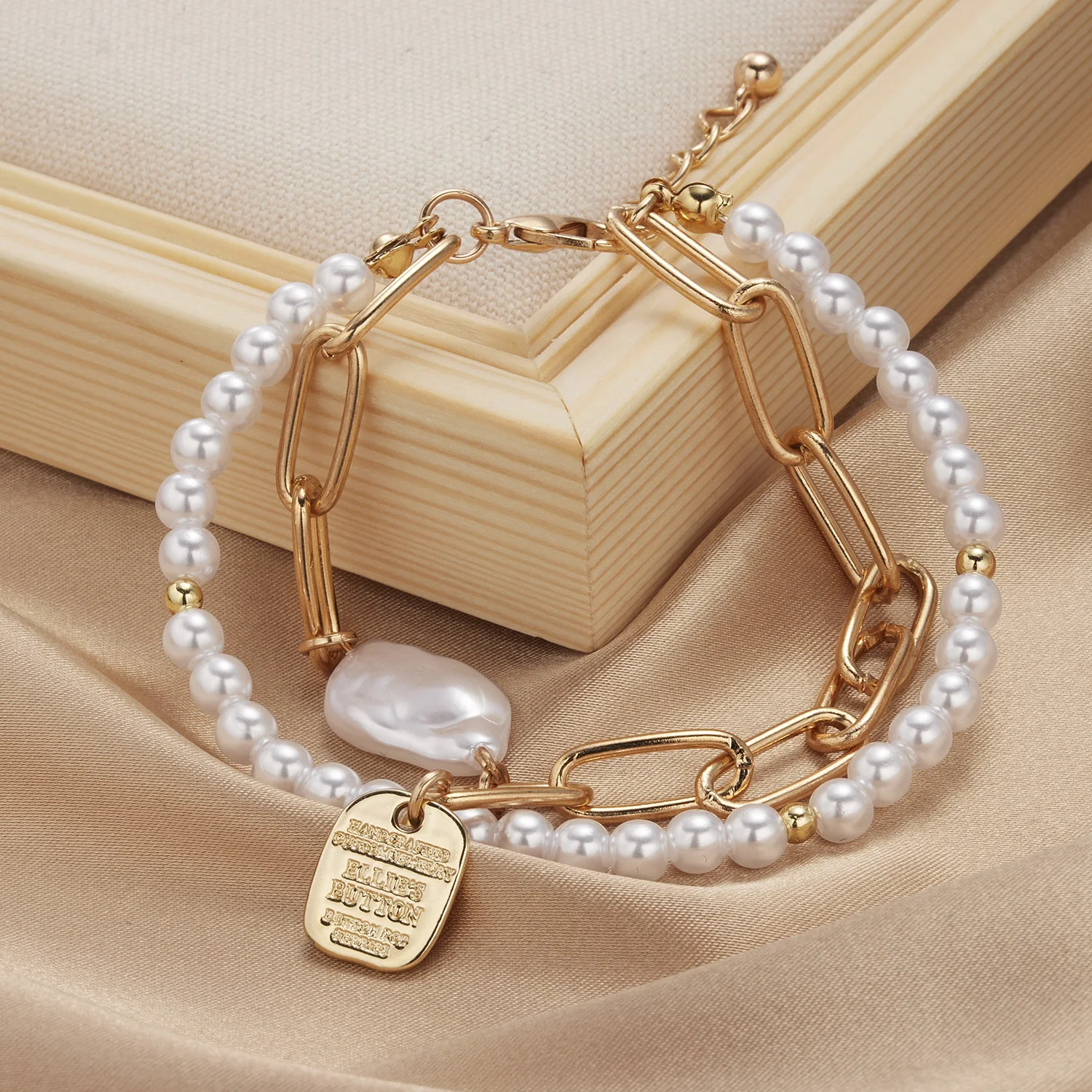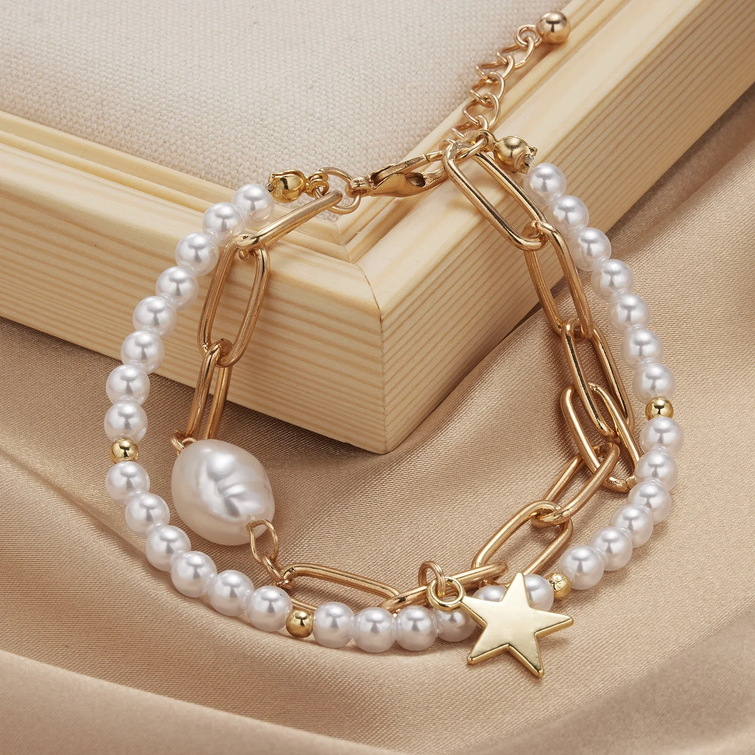 Это браслет из искусственного жемчуга, он имеет элегантный аксессуар с подвеской, очень очаровательный и модный, надеюсь, вам понравится, спасибо