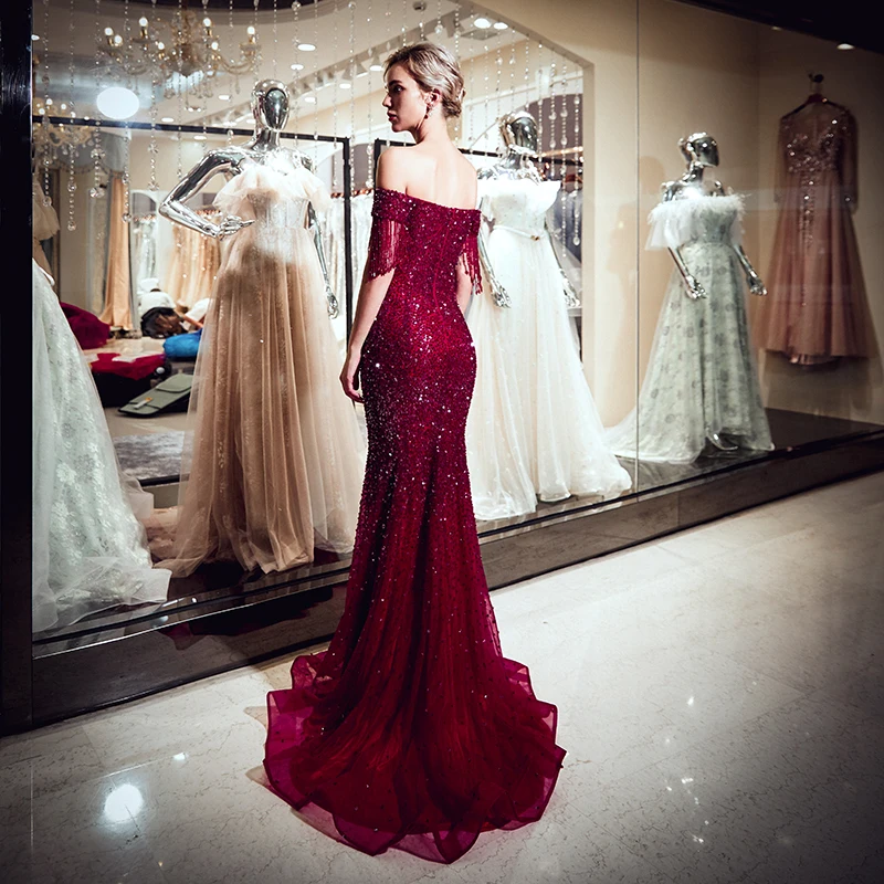 2020 сексуальное Золотое вечернее платье с пайетками v-образный вырез Русалка Вечерние платья Роскошные женские вечерние платья с бисером