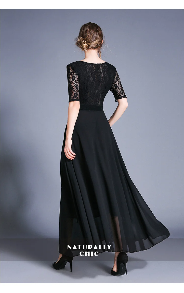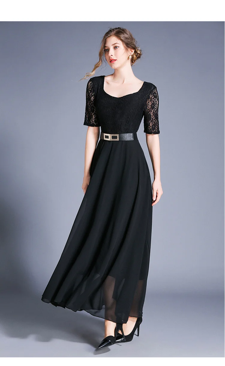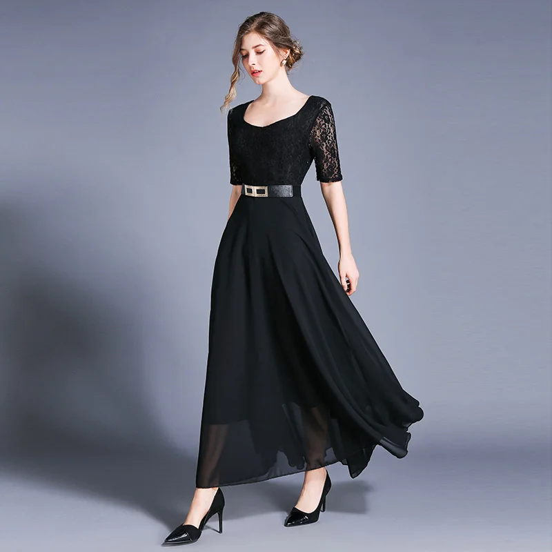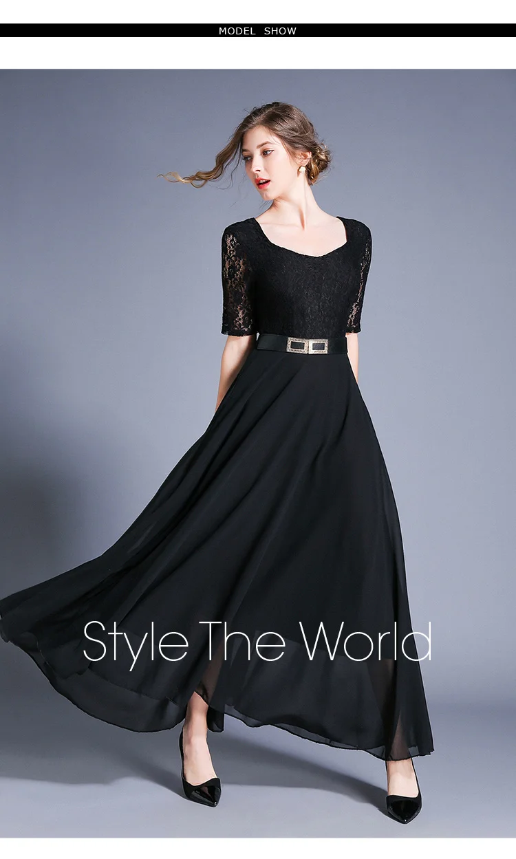 Женское длинное шифоновое платье макси, Черное длинное кружевное платье, вечерние платья, K8303, лето 2019